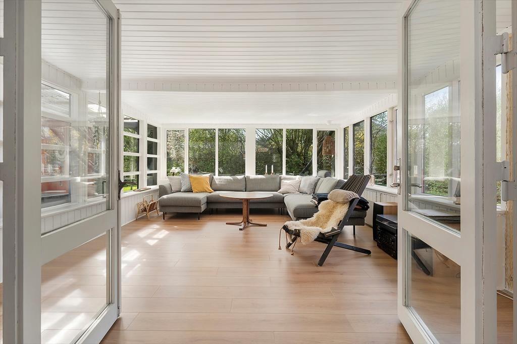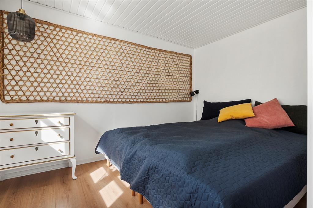 Auf dem großen Naturgrundstück gibt es reichlich Platz zur Entfaltung. Der Garten bietet Sonne und Windschutz, da hohe Bäume und Büsche ihn umgeben. Hier haben Kinder viel Platz zum Spielen, Klettern und Herumtoben, während die Erwachsenen die Ruhe und die Wärme der Sonne auf der Terrasse genießen. Nur wenige Meter vom Haus entfernt liegt der örtliche Spielplatz – ein Hit für kleine und große Spielkinder. Hier gibt es u.a. Schaukeln, ein Klettergerüst, eine Seilbahn, Rampen, einen Basketballkorb und ein Fußballfeld. Die friedliche Umgebung und die abwechslungsreiche Pflanzenwelt machen Lille Hegnet zu einem wunderbaren Ort für Aufenthalte – morgens wie abends. Und wenn die Sonne langsam über der Landschaft untergeht, gibt es kaum etwas Schöneres, als den Grill anzuwerfen und das Abendessen unter freiem Himmel im goldenen Licht des Sonnenuntergangs zu genießen.
