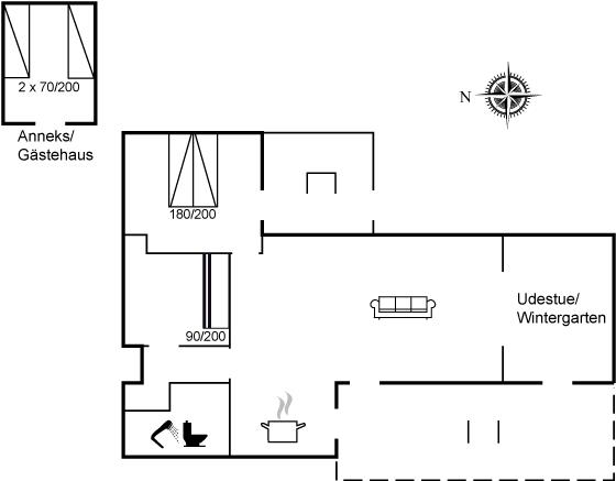 In einem ruhigen Ferienhausgebiet - nicht weit vom Wasser und einem guten Badestrand entfernt liegt dieses schöne Ferienhaus. Zum Haus gehört ein schönes Gästehaus (eignet sich nicht zur Vermietung im Winter) mit 2 Einzelbetten, das sich ganz vorzüglich für 2 Teenager eignet, da die Internetverbindung hier besonders gut ist.