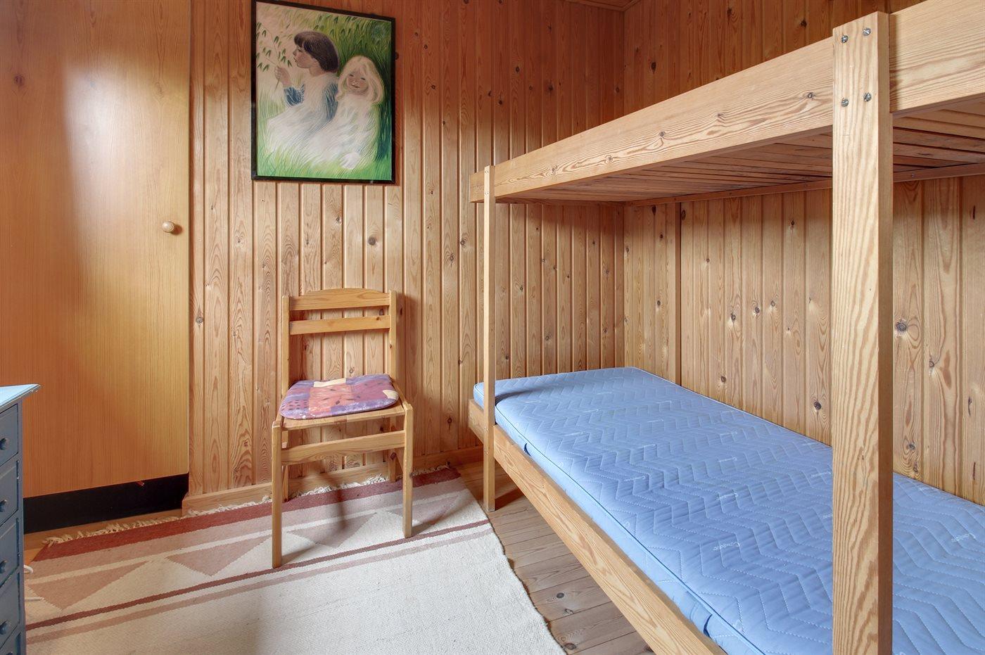Die Schlafplätze verteilen sich auf 2 Schlafräume. 2 Schlafplätze in einem Doppelbett. 2 Schlafplätze in einem Etagenbett.