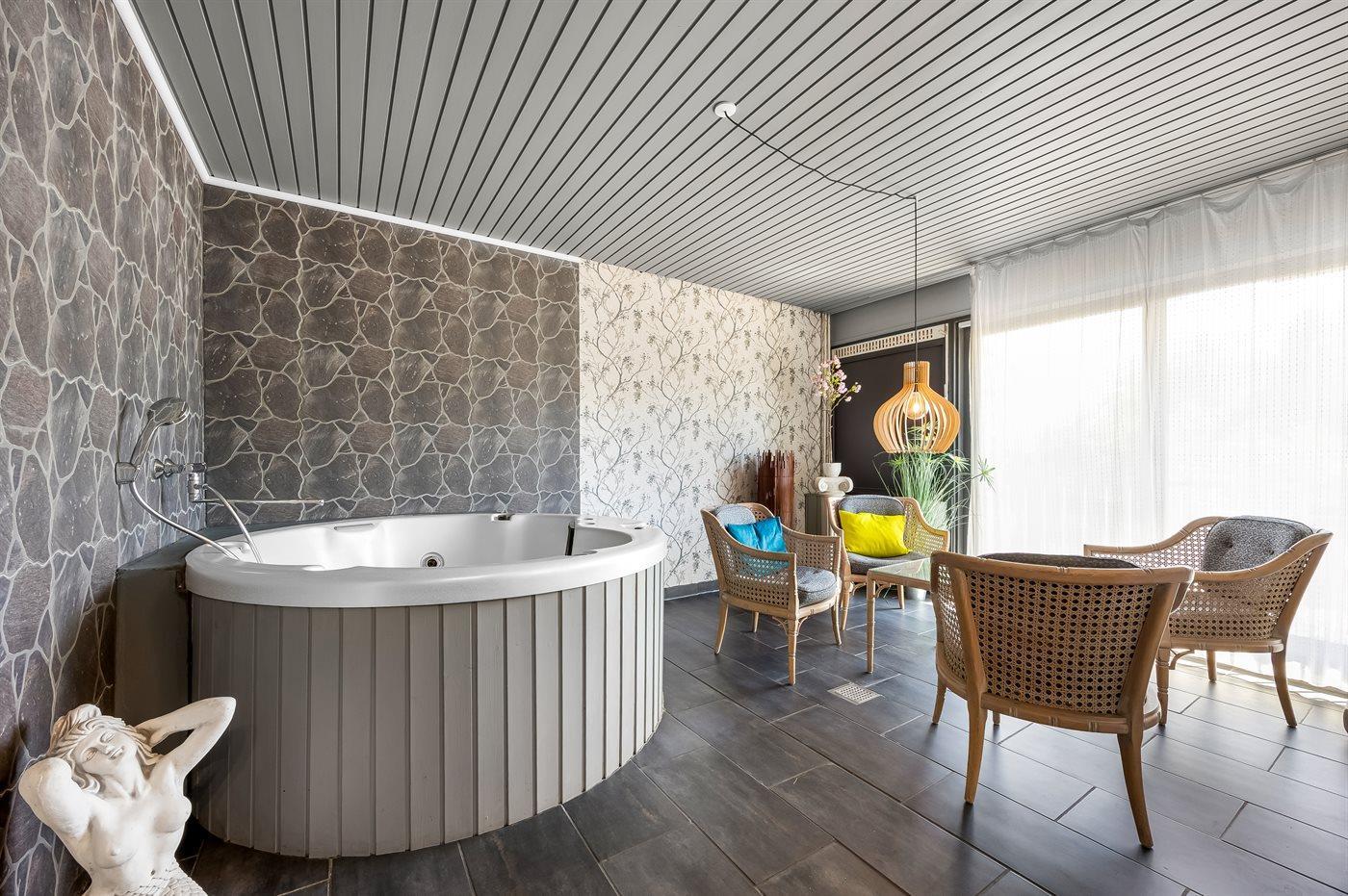 Die Villa ist ideal für Entspannung und Wohlbefinden und verfügt über einen privaten Wellnessbereich. Im Wellnessbereich findest du einen großen Whirlpool mit Platz für 5 Personen sowie eine Sauna, die frei genutzt werden kann. Der Raum ist mit Tisch und Stühlen ausgestattet, und es ist offensichtlich, dass der Eigentümer darauf geachtet hat, eine Atmosphäre für gemütliche Stunden zu schaffen. Hast du Lust, unter den Sternen in einem Hot Tub zu sitzen? Auf der Terrasse gibt es auch die Möglichkeit dazu, mit Platz für 5–6 Personen.