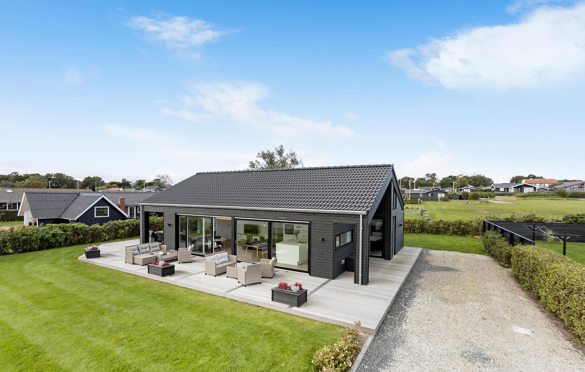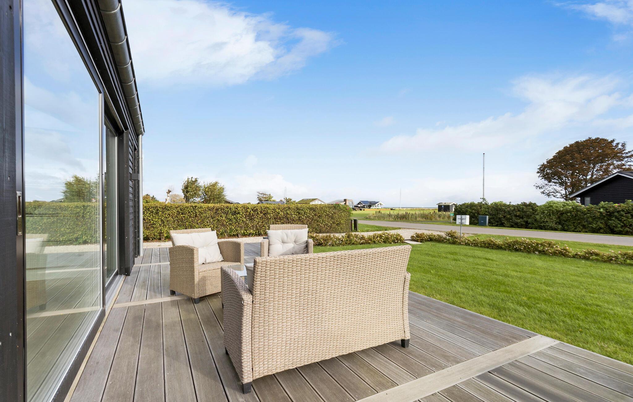 Charmantes Ferienhaus in Sæby mit Meerblick, großer Terrasse und moderner Ausstattung für erholsame Urlaubstage.