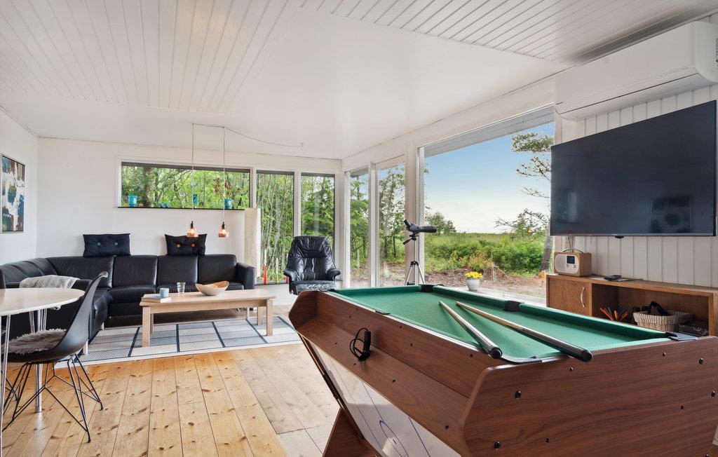 Behaglich eingerichtetes Ferienhaus auf abseits gelegenem Grundstück mit Aussicht auf den Fjord. Ein eigener Gehweg geht vom Haus zum Limfjord hinunter, einem Fjord mit guten Fischvorkommen. Das Haus liegt in einer reizvollen, ruhigen Ferienhaussiedlung. Nicht weit entfernt liegt auch die grüne Insel Fur, die Sie ihre Natur entweder zu Fuß oder mit dem Fahrrad erleben lässt. Gute Geschäfte für den täglichen Bedarf finden Sie in Skive, Holstebro und Nykøbing, sie sind in knapp einer halben Stunde Autofahrt erreicht.