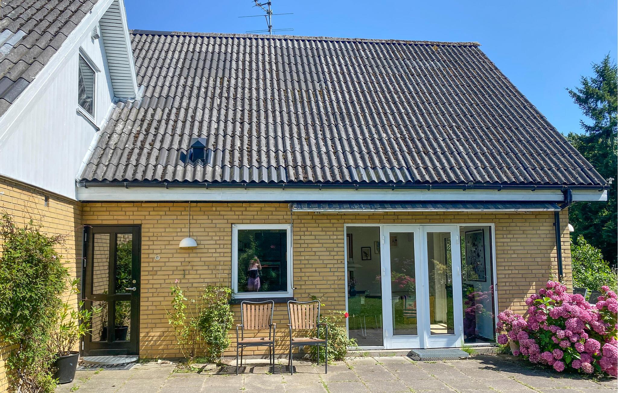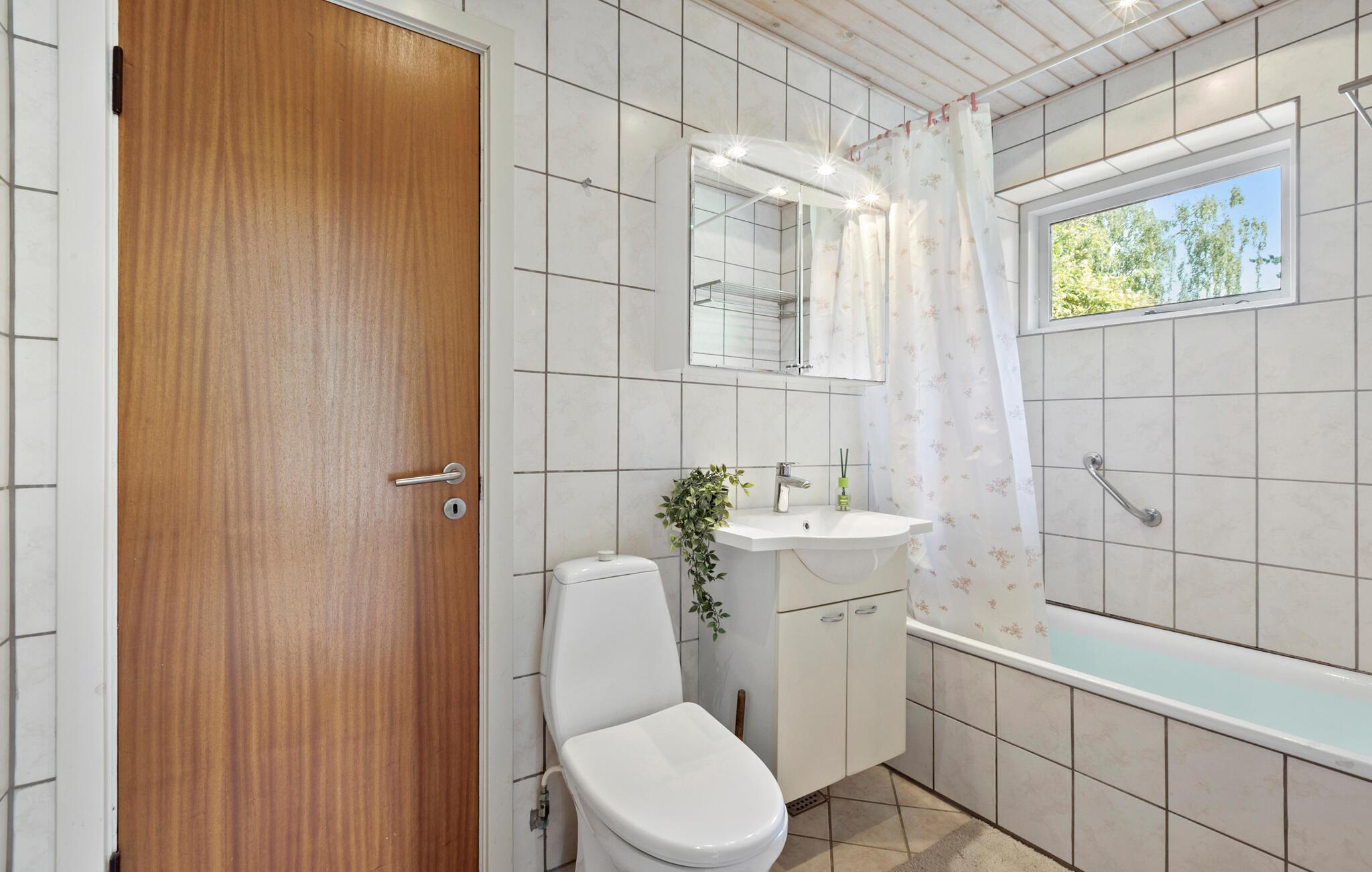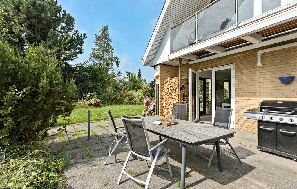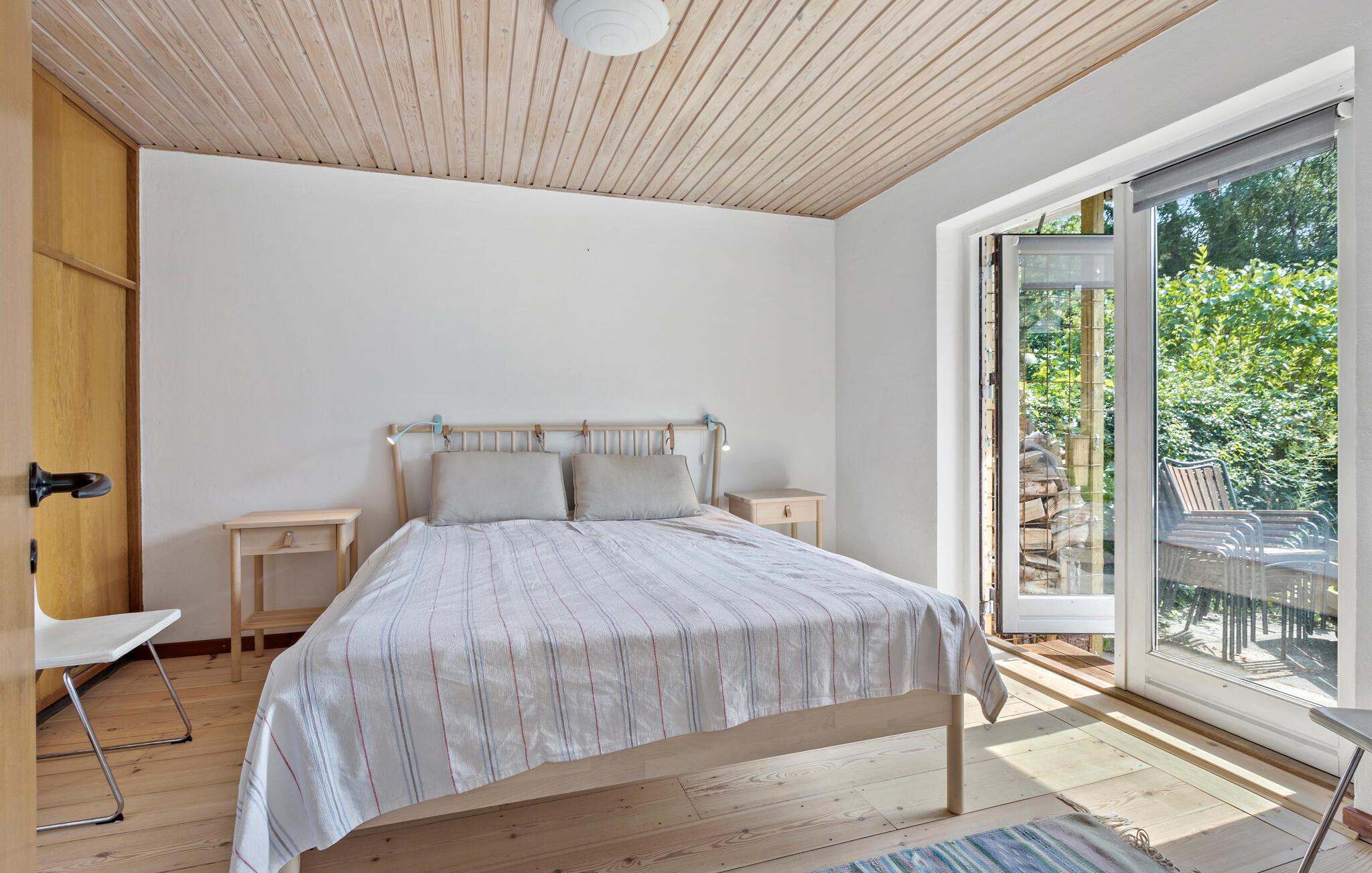 Verbringen Sie Ihren nächsten Urlaub in diesem bezaubernden Ferienhaus in Sølager und lassen Sie sich von der wunderschönen Umgebung verzaubern. Genießen Sie die sonnigen Tage auf der großzügigen Terrasse, die von Sträuchern und Bäumen umgeben ist. Lassen Sie den Blick über den gepflegten Garten schweifen, während Sie bei einer Tasse Kaffee die Ruhe der Natur genießen. Im Inneren des Hauses erwartet Sie ein großzügiges, helles Wohnzimmer mit hohen Decken und freiliegenden Holzbalken. Setzen Sie sich auf eines der gemütlichen Sofas und lesen Sie ein gutes Buch. Nutzen Sie die geräumige Küche, um köstliche Mahlzeiten zuzubereiten, und genießen Sie diese anschließend im stilvollen Essbereich oder bei gutem Wetter draußen auf der Terrasse.