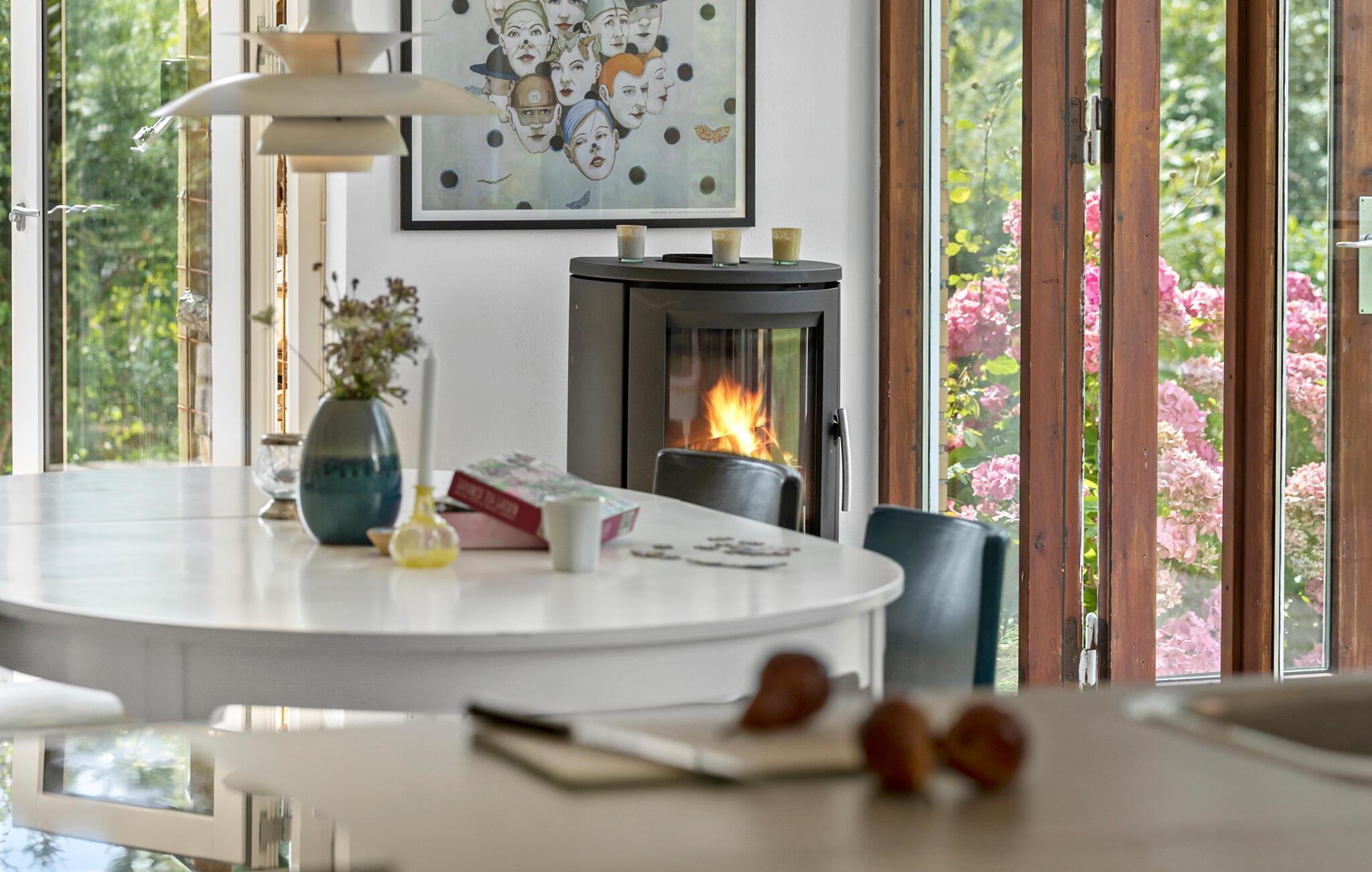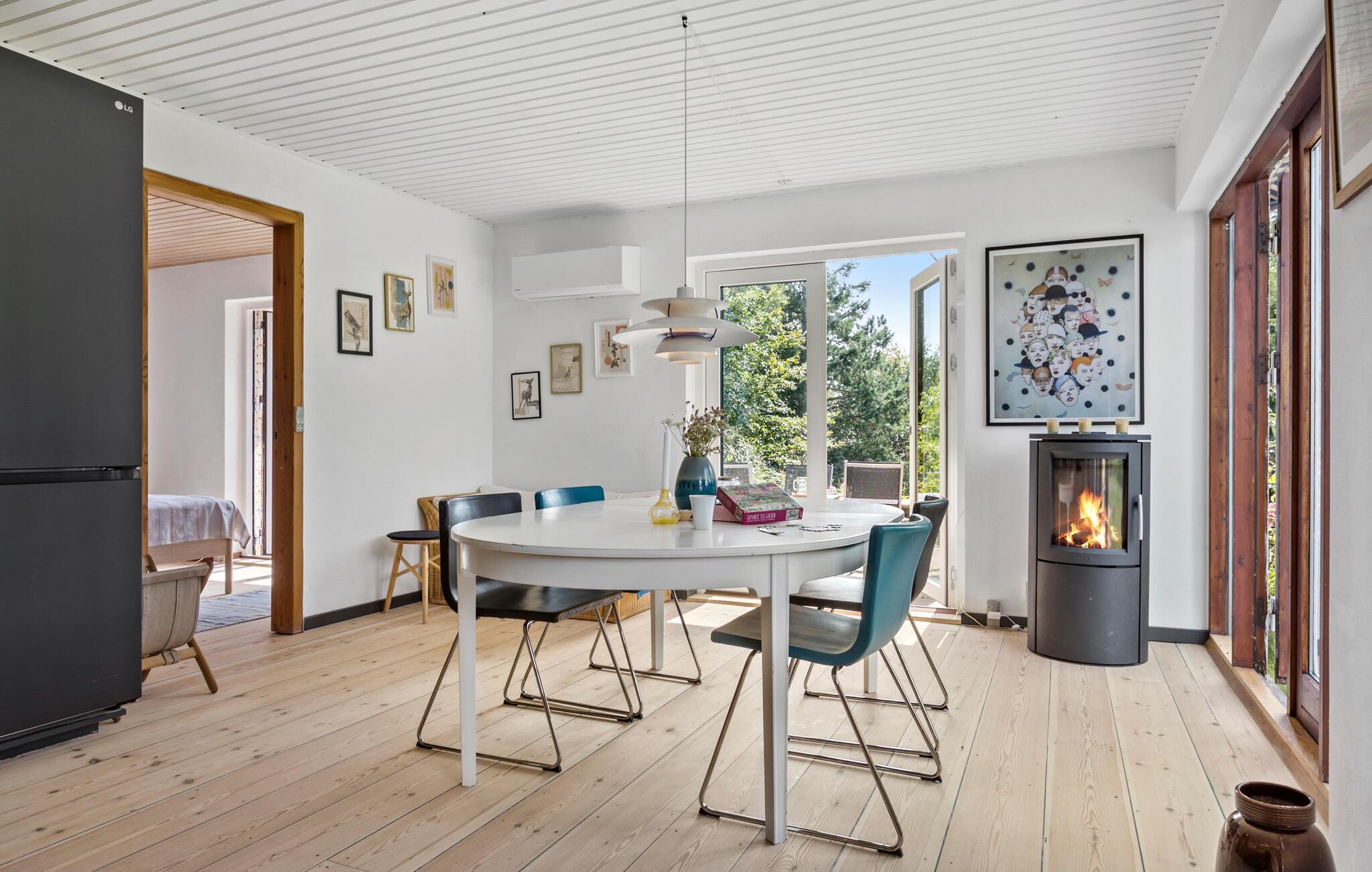 Charmantes Ferienhaus in Sølager mit großer Terrasse, Kamin und Nähe zum Strand für erholsame Naturerlebnisse.