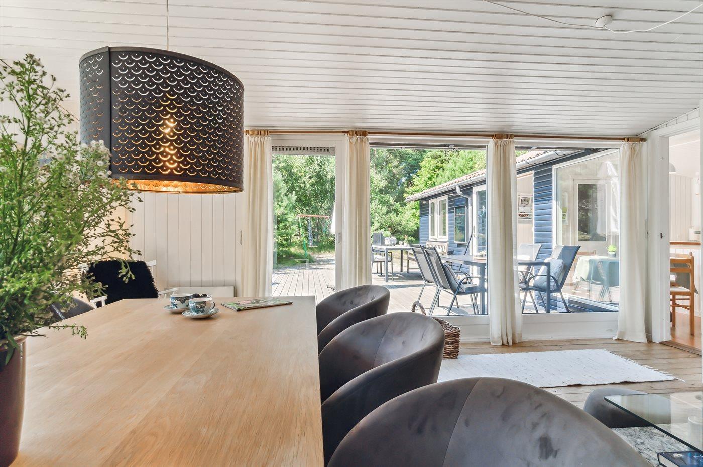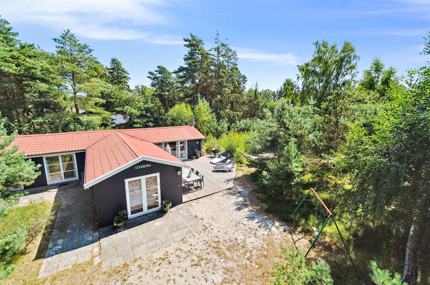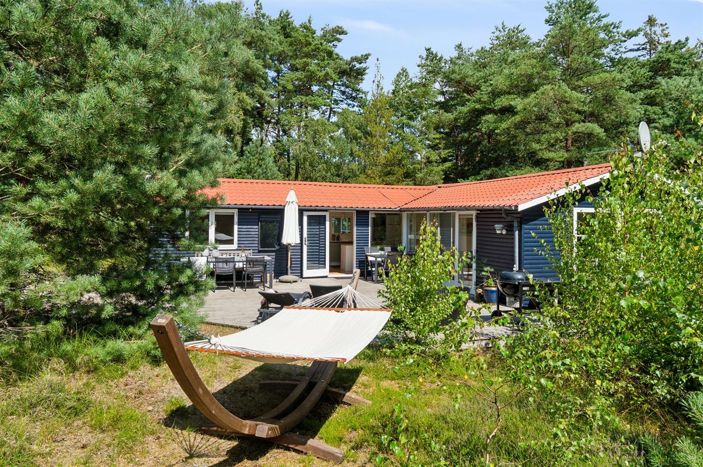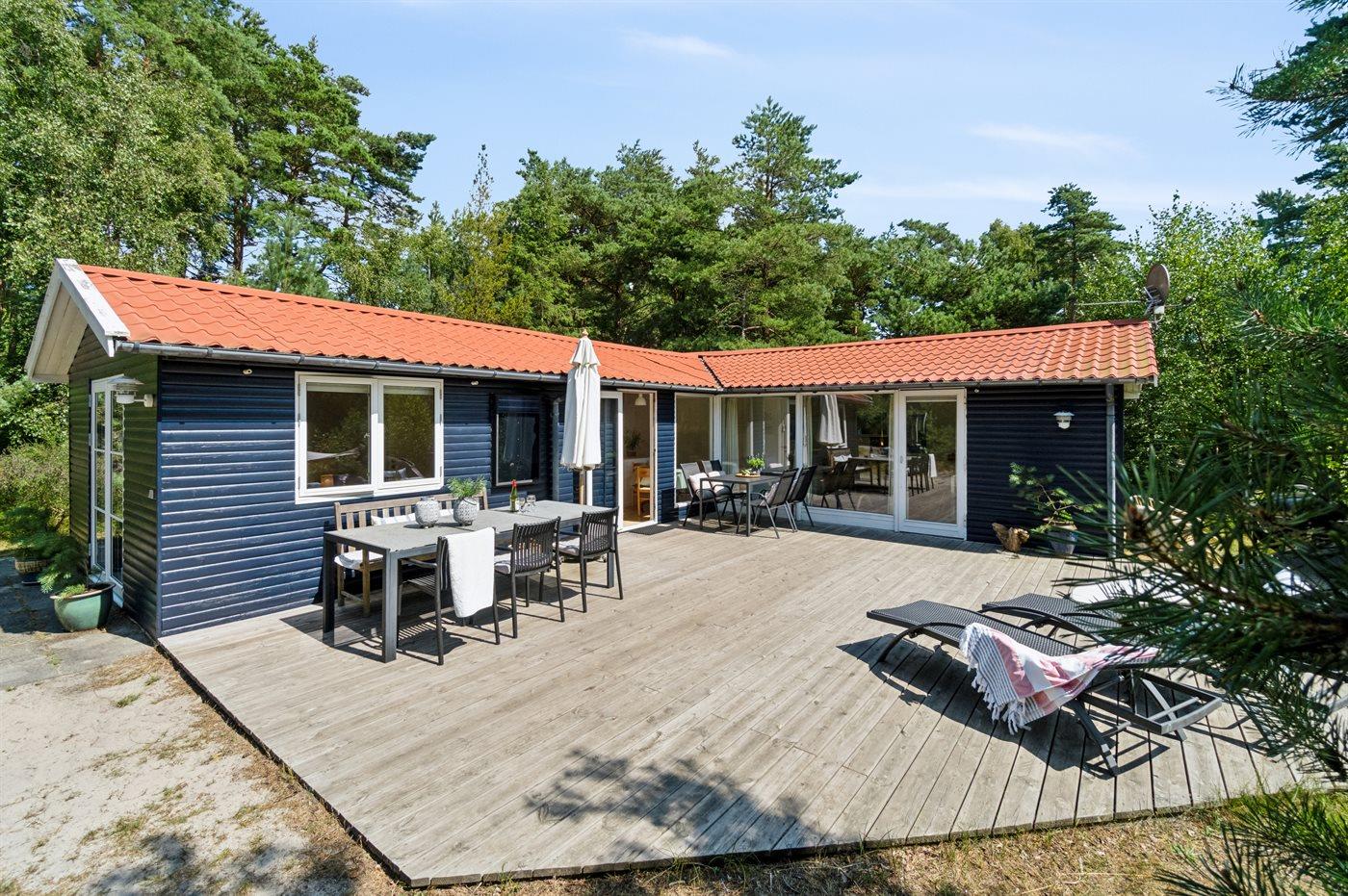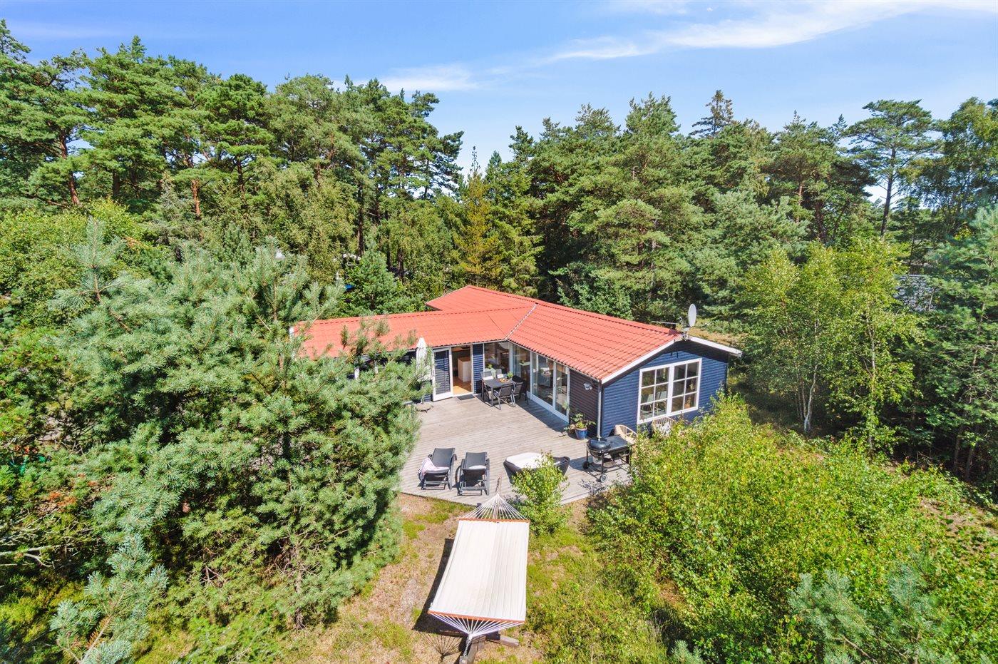 Dieses Ferienhaus verfügt über einen Whirlpool und eine große Sauna und befindet sich im wunderschönen Østre Sømarken. Das Haus liegt im Wald und in der Nähe eines der besten Sandstrände der Insel. Im Jahr 2024 wurde dem Haus eine neue Küche eingebaut. Sowohl vom Wohnzimmer als auch von der Küche aus gibt es direkten Zugang zur großen, nach Süden ausgerichteten Terrasse, die mit guten Gartenmöbeln, einer großen Hängematte, Sonnenliegen und einem Grill ausgestattet ist.