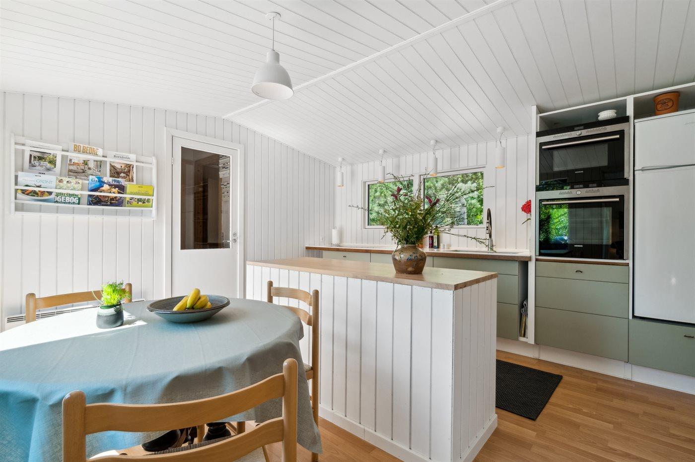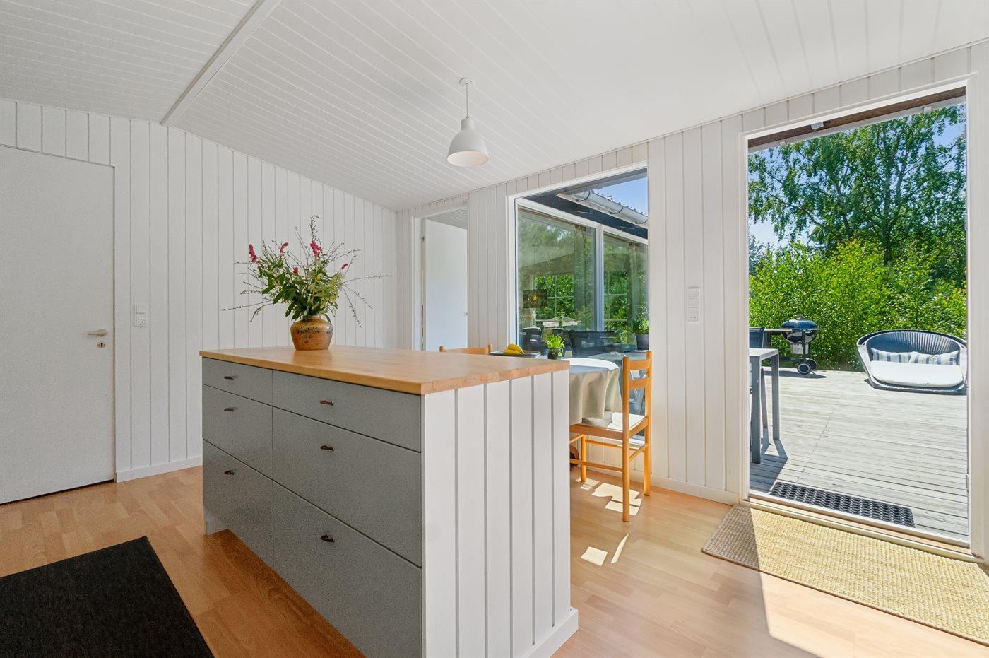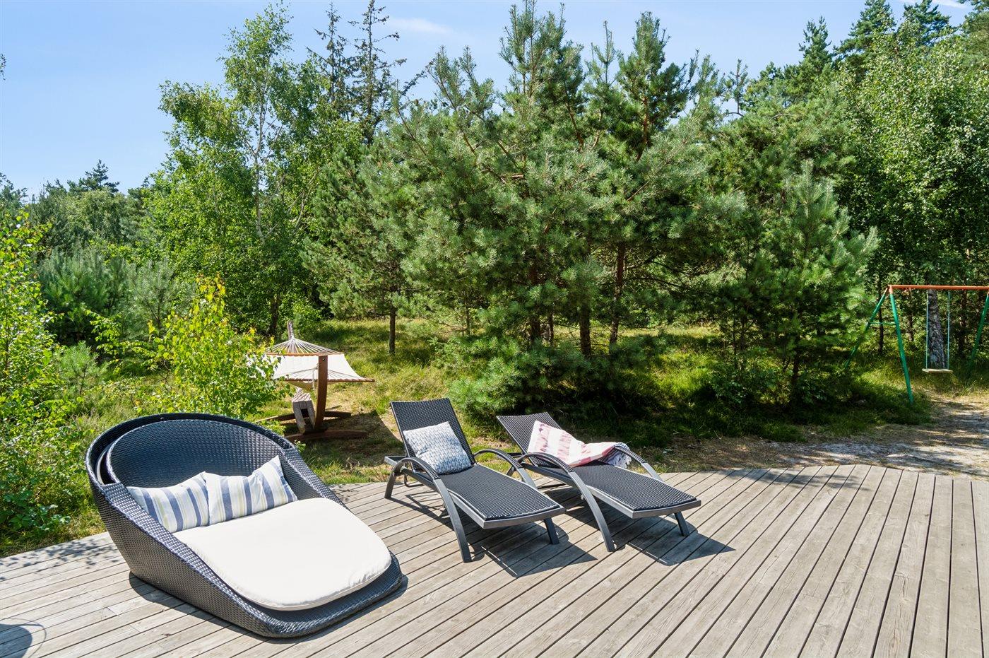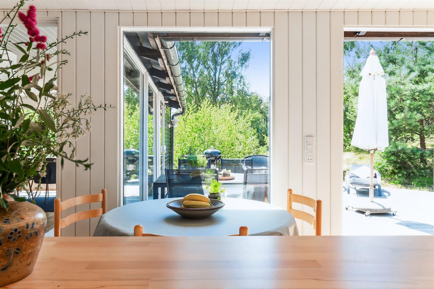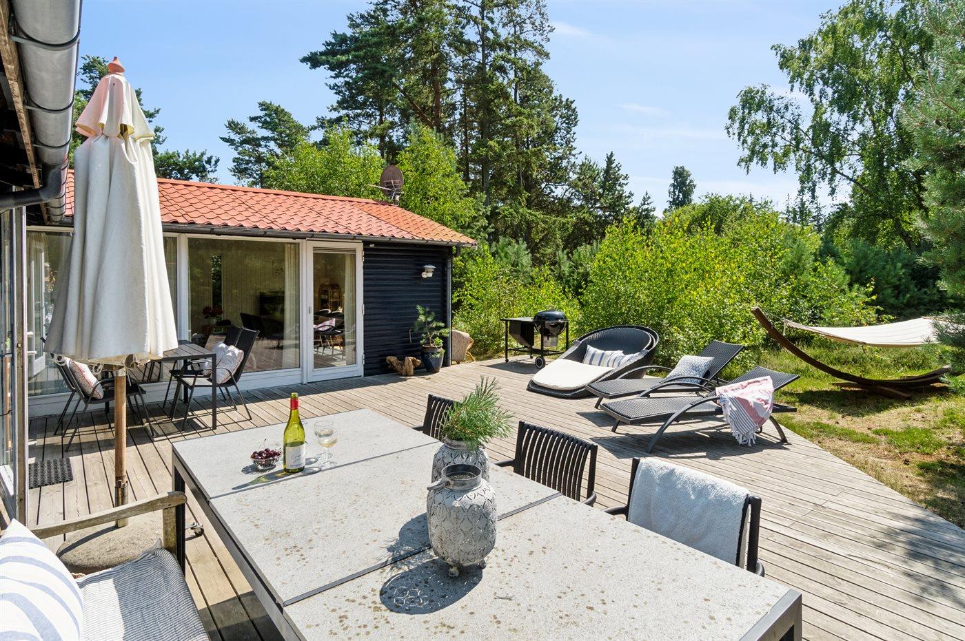 Dieses Ferienhaus verfügt über einen Whirlpool und eine große Sauna und befindet sich im wunderschönen Østre Sømarken. Das Haus liegt im Wald und in der Nähe eines der besten Sandstrände der Insel. Im Jahr 2024 wurde dem Haus eine neue Küche eingebaut. Sowohl vom Wohnzimmer als auch von der Küche aus gibt es direkten Zugang zur großen, nach Süden ausgerichteten Terrasse, die mit guten Gartenmöbeln, einer großen Hängematte, Sonnenliegen und einem Grill ausgestattet ist.