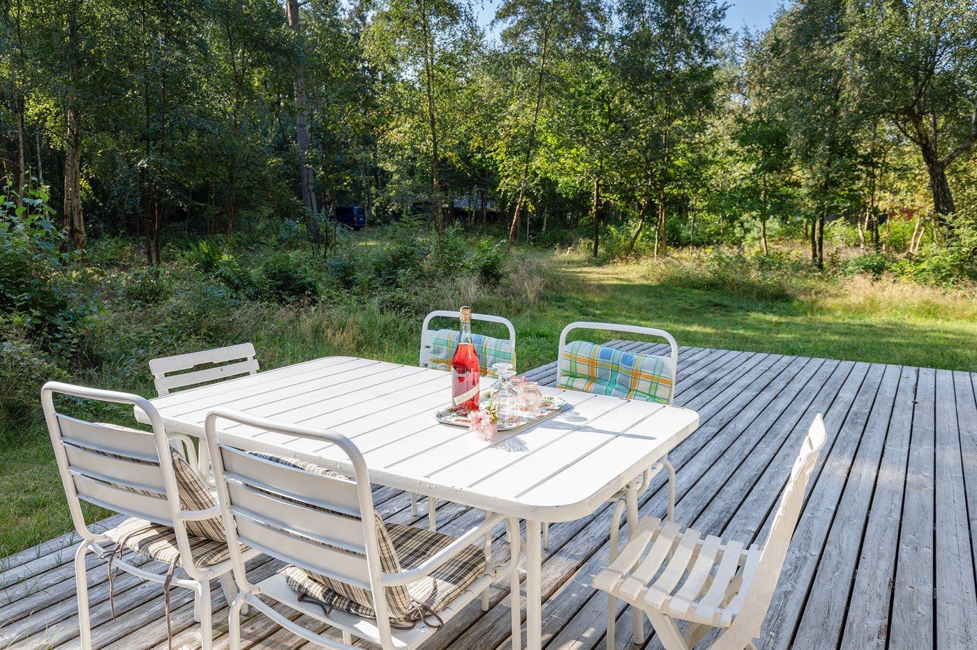 Auf einem großen Grundstück in naturschöner Umgebung finden Sie dieses Ferienhaus. Vom Grundstück aus führt ein Pfad direkt an den Badestrand.