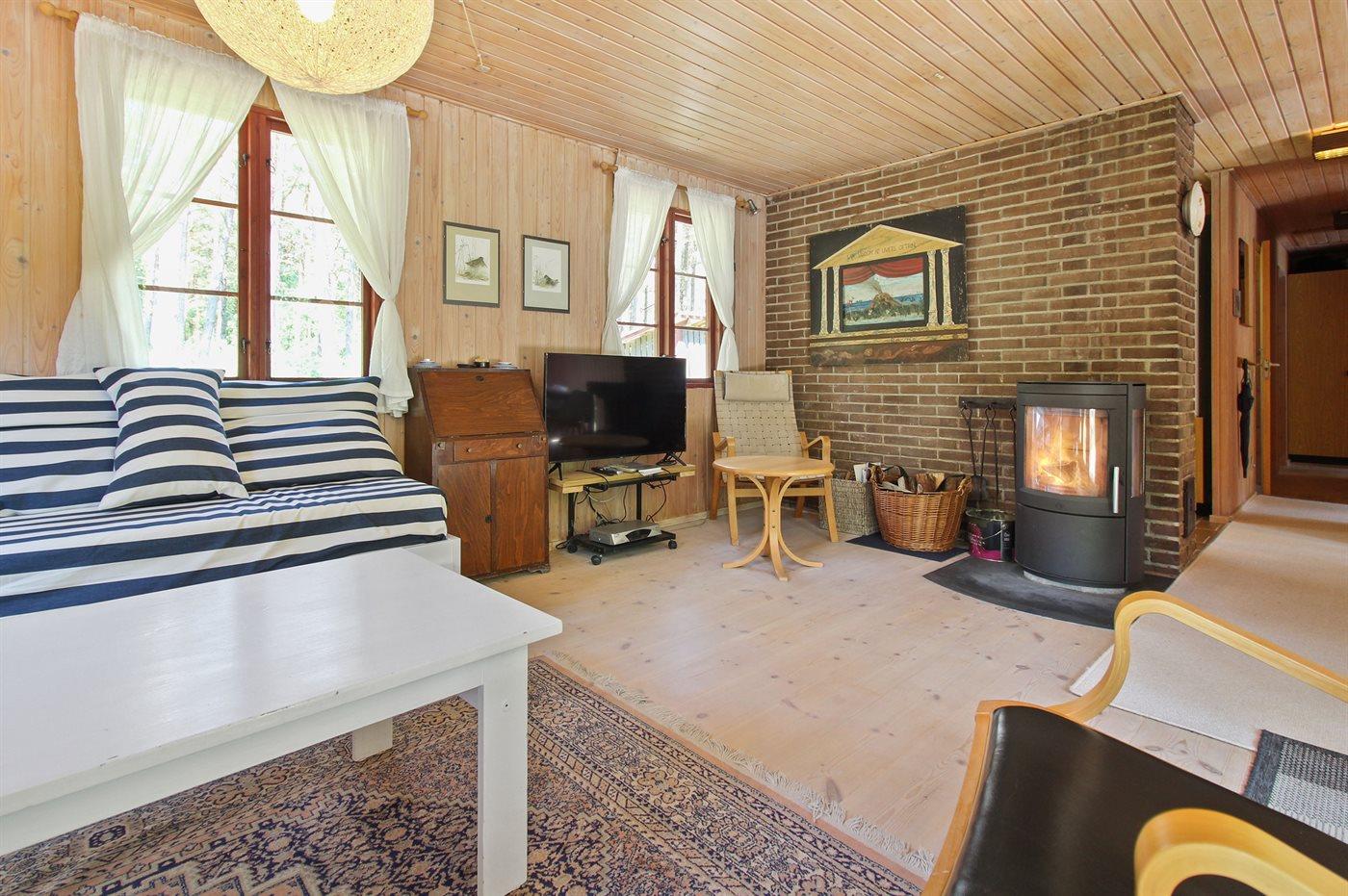 Gemütliches Ferienhaus nahe Badestrand mit Kamin, großer Terrasse und naturbelassenem Grundstück.