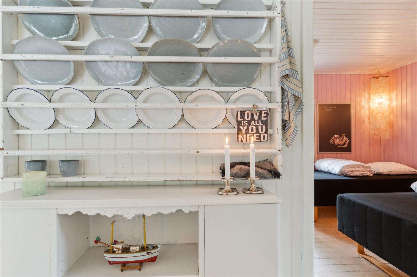 Dieses schöne Ferienhaus liegt etwas zurückgezogen auf einem Naturgrundstück mit leichter Bepflanzung – daher kann man sich verhältnismässig ungestört auf dem Grundstück aufhalten. Über die letzten Jahre wurde das Haus modernisiert - unter anderem mit einer neuen, schönen und funktionalen Küche. Die Möblierung ist von sehr guter Qualität und alles tritt nett und gepflegt hervor. Zum Haus gehören eine große, teilweise überdachte Terrasse und ein einladender Wintergarten, von dem aus man die Natur und die Umgebung aus erster Reihe genießen kannst.