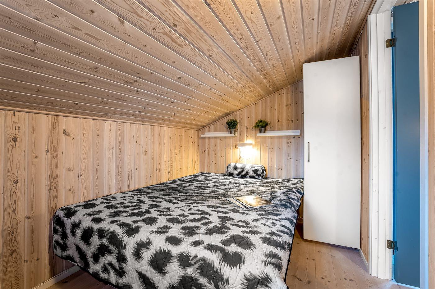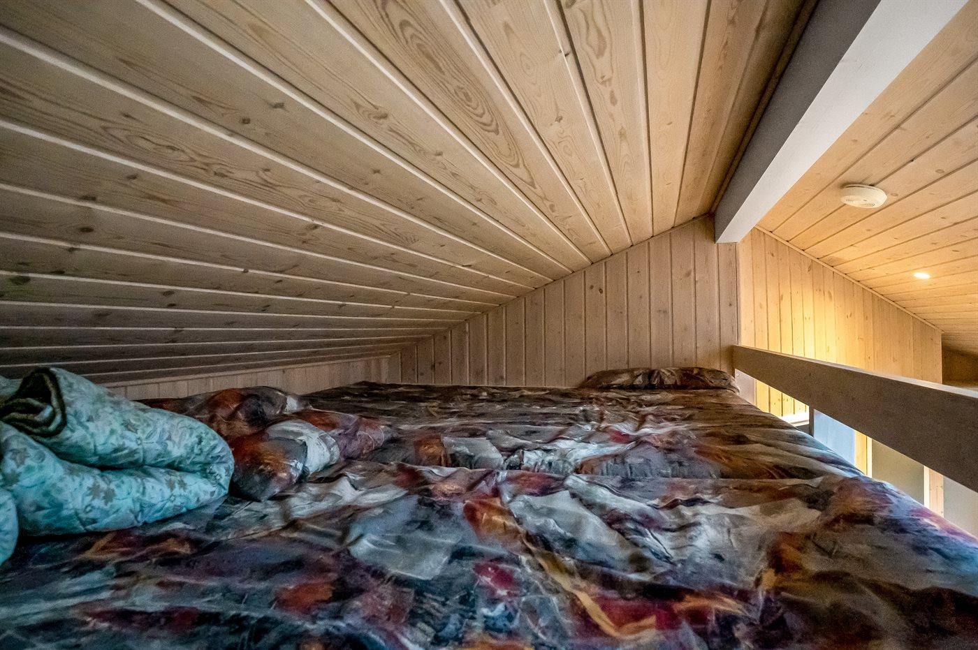 Die Schlafplätze verteilen sich auf 2 Schlafräume. 4 Schlafplätze in Doppelbetten. 2 Schlafplätze auf Matratzen. 2 von diesen Schlafplätzen befinden sich im offenen Obergeschoss.