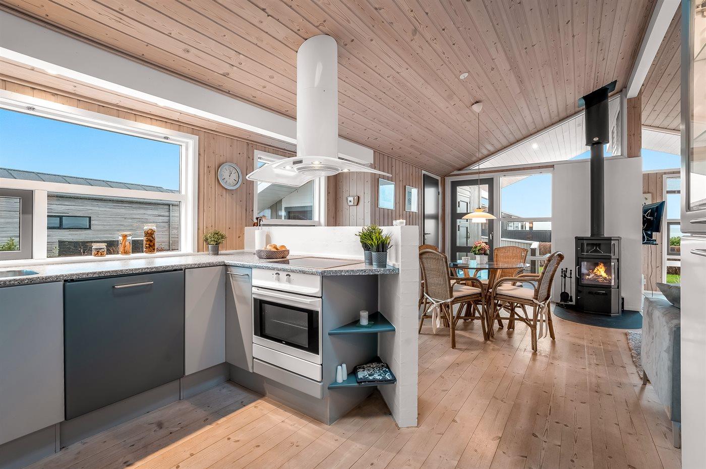 Das im Jahr 2004 erbaute Ferienhaus ist sehr gut eingerichtet und eignet sich perfekt z. B. für eine Familie mit 2–3 Kindern oder auch für ein Paar, das einen Urlaub in dieser herrlichen Umgebung verbringen möchte. Du hast ein großes, offenes Küchen-/Wohnkonzept, und von dem aus kannst du die Aussicht in vollen Zügen genießen. Auch von den schönen, teilweise überdachten Terrassenflächen ist der Ausblick ganz besonders, und oft findest du hier einen windgeschützten Platz, um die Ruhe zu genießen.