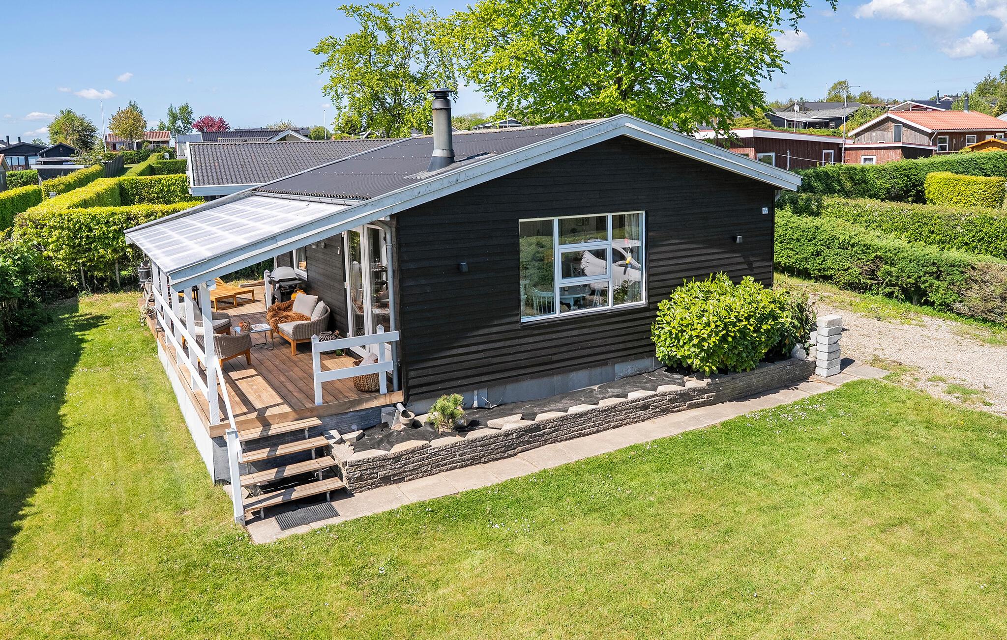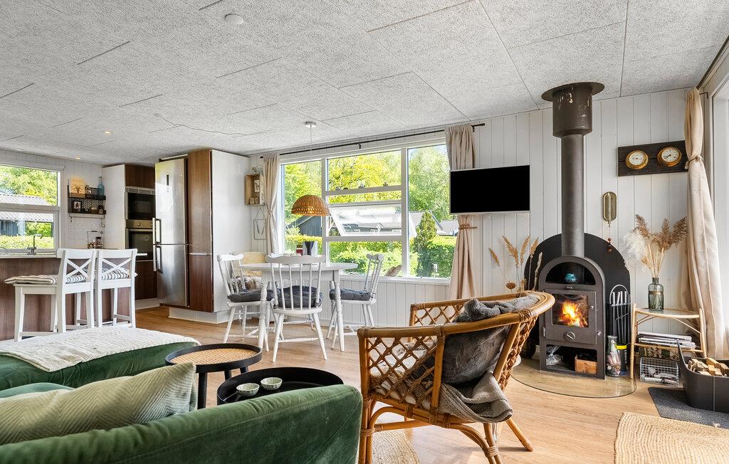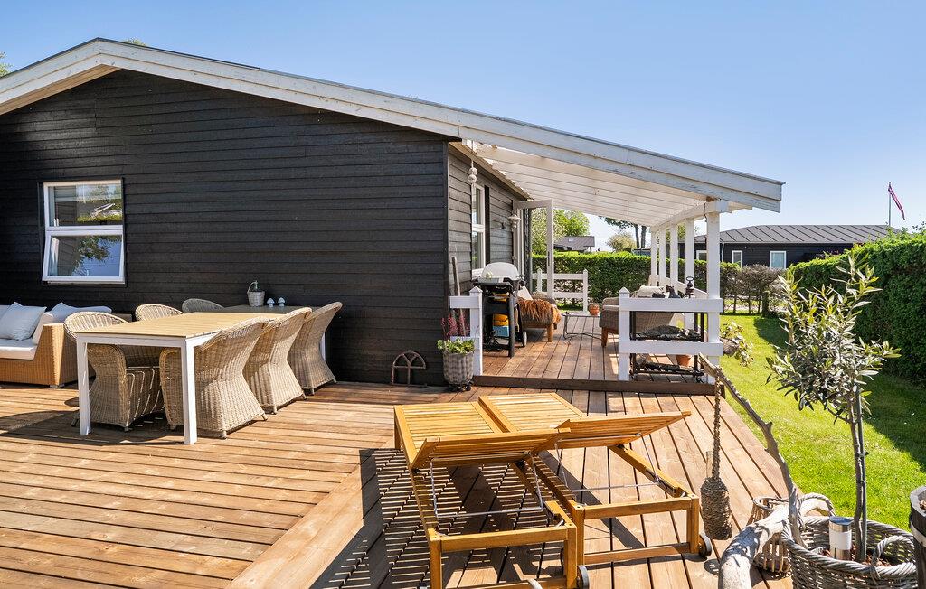 Komfortables Ferienhaus nahe dem Sandstrand in Juelsminde mit Terrasse und Kaminofen für eine erholsame Auszeit.