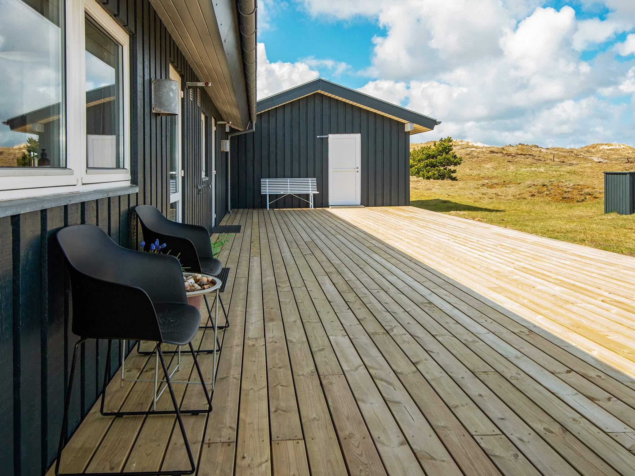 Ein Teil der insgesamt 175 m² gr. Terrassenfläche ist kindgerecht, mit niedrigem Zaun versehen. Für Kleinkinder stehen zudem zwei Hochstühle, extra Babybett m. Bettdecke, Dreirad und Kindertisch bereit. Im Schuppen findet man ausreichend Stauraum für z.B. Ihre Golfausrüstung. Unweit liegt nämlich bei Fanø Bad der 18-Loch Sealink-Golfplatz.