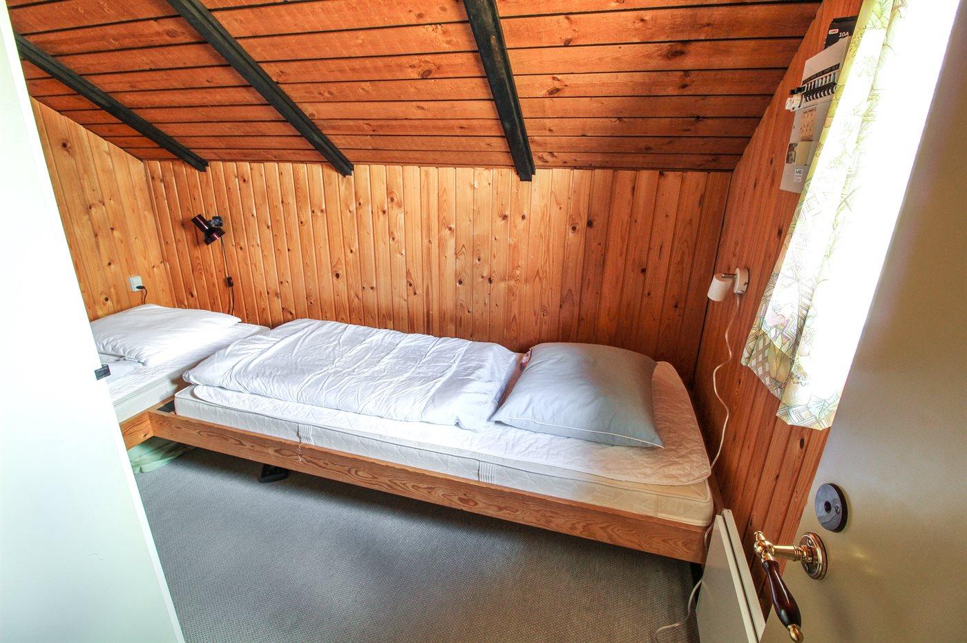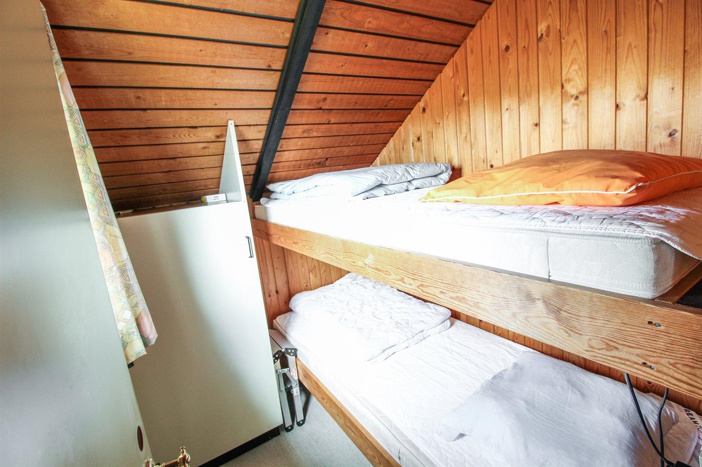 Die Schlafplätze verteilen sich auf 2 Schlafräume. 2 Schlafplätze in Einzelbetten. 2 Schlafplätze in einem Etagenbett.