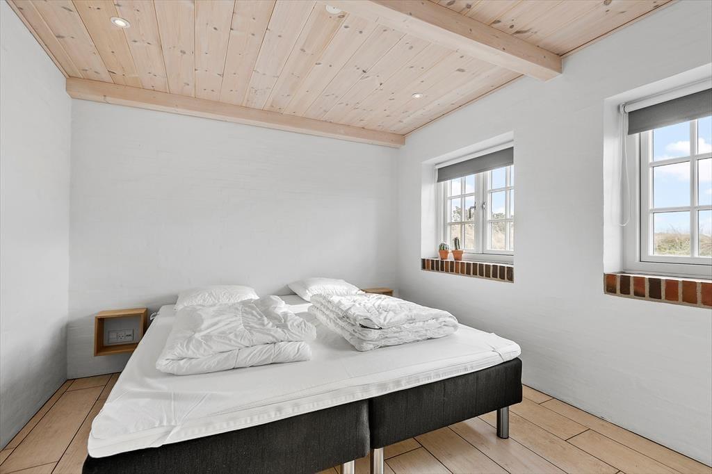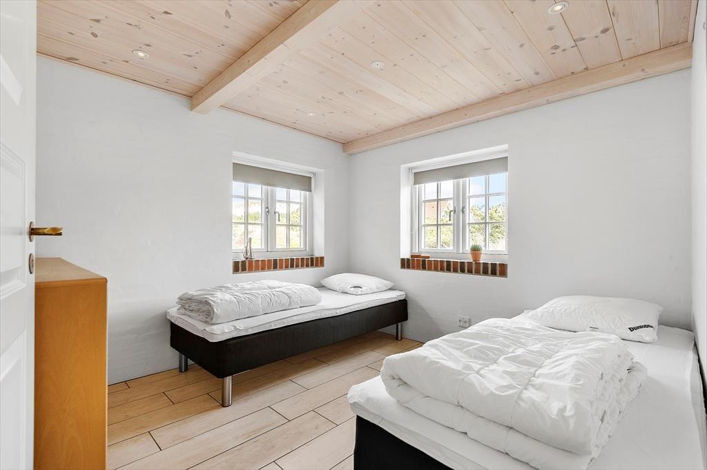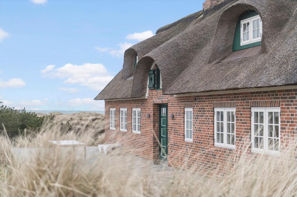 Die grüne Eingangstür, das Strohdach und die Sprossenfenster, leiten den Gedanken auf ein klassisches ”Fanøhaus” hin, es wurde jedoch erst 2021 gebaut. Mit der modernen Einrichtung und den schönen Details bietet es einen fantastischen Ausgangspunkt für einen erholsamen und genüsslichen Urlaub. Das eine Badezimmer hat eine Badewanne und eine Infrarotsauna, wenn Du ganz abschalten und die Wärme bis in die Zehenspitzen spüren möchtest. Die Küche wird von drei Himmelsrichtungen aus mit Sonne durchflutet und die freie Aussicht auf die Natur lässt sich sowohl von der Kücheninsel als auch bei einem Glas Wein auf dem Barhocker bei der Küche genießen. Es ist berauschend im Wohnzimmer im 1. Stock zu stehen, und auf die unendliche Weite des Meeres zu blicken. Im Wohnzimmer gibt es mehrere kuschelige Ecken, wo Du entspannt ein Buch lesen oder zum Hörbuch einen Mittagsschlaf machen kannst.