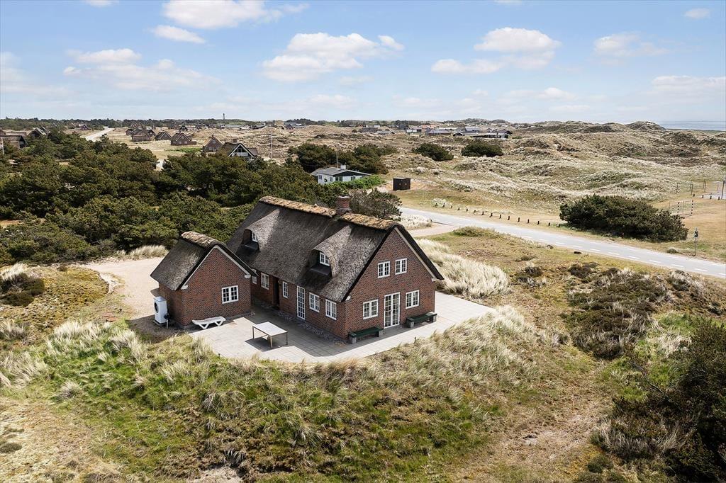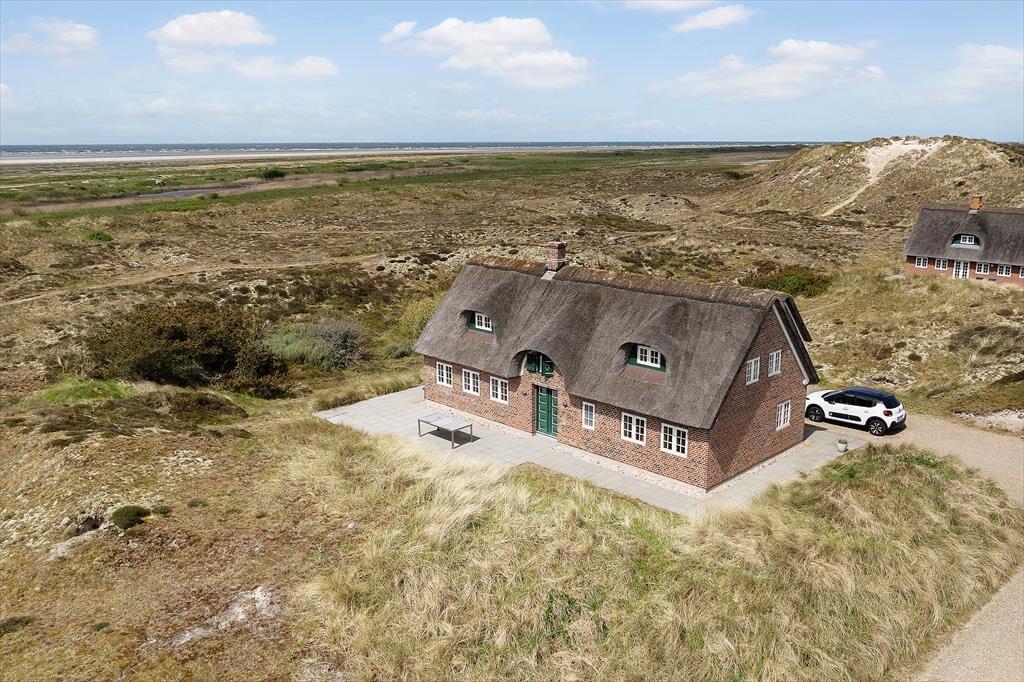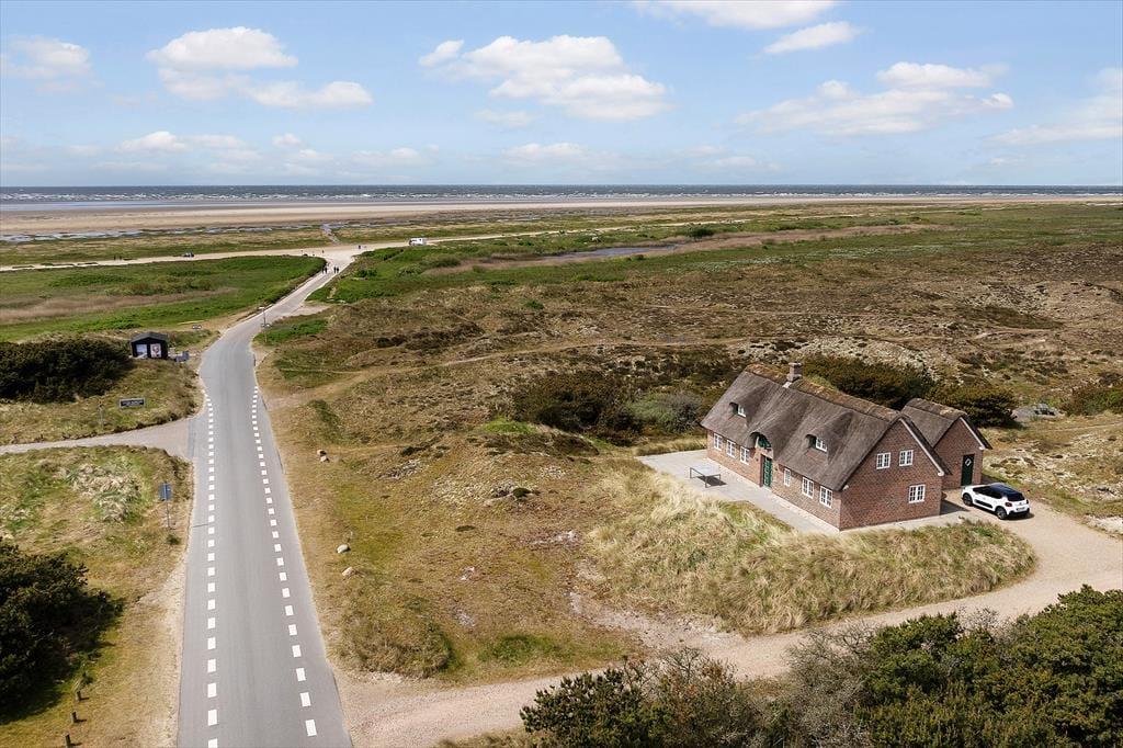 Nur wenige Ferienhäuser haben eine Lage wie dieses Luksusferienhaus an Sønderho Strandvej 69.Es liegt in der ersten Reihe zum Strand und sowohl vom Erdgeschoss als auch vom ersten Stock aus, kann man die einzigartige Panoramaaussicht über die Nordsee und über die sanfte hügelige Dünenlandschaft genießen.