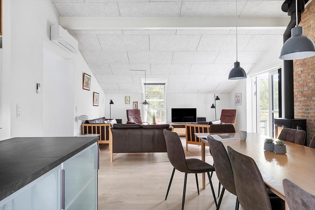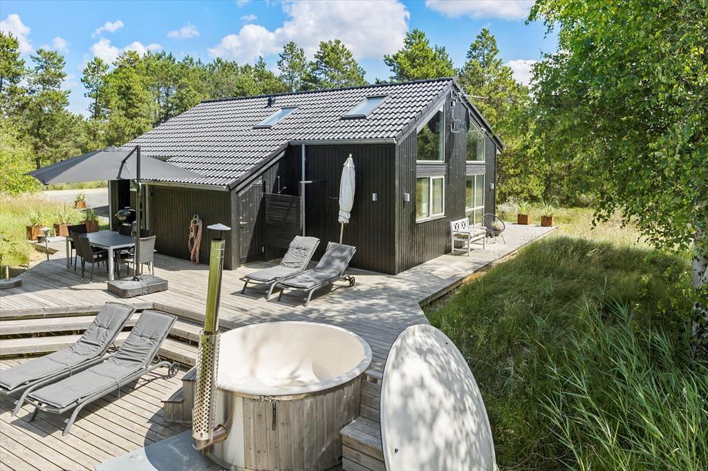 Entspannst du dich am liebsten am Brennofen oder möchtest du lieber Spaß im Aktivitätsraum haben? Möchtest du deinen Frühstückskaffee mit Blick auf das Naturgrundstück genießen oder eine stille Stunde unter dem Abendhimmel im Wildnisbad erleben? Im Præstekraven 3, im beliebten Gebiet Sønderstrand, brauchst du dich nicht zu entscheiden, denn in diesem großen Qualitätsferienhaus für 10 Personen lässt sich jedes Szenario ohne Probleme ausleben.