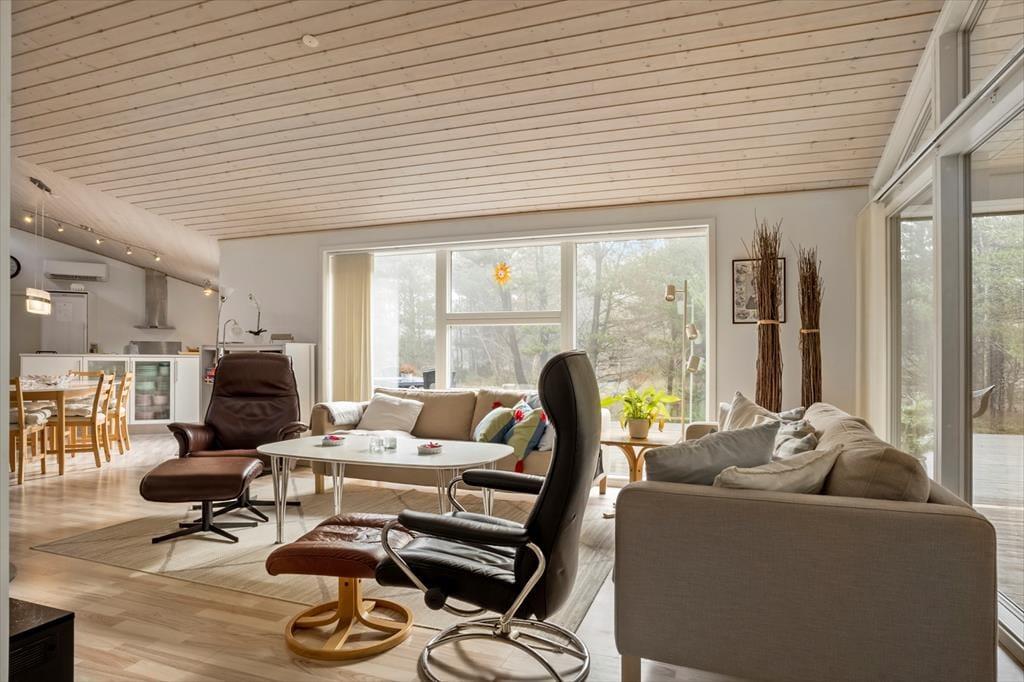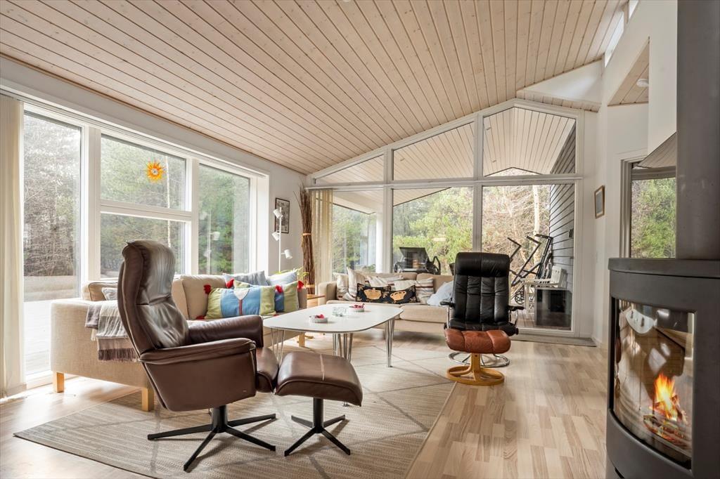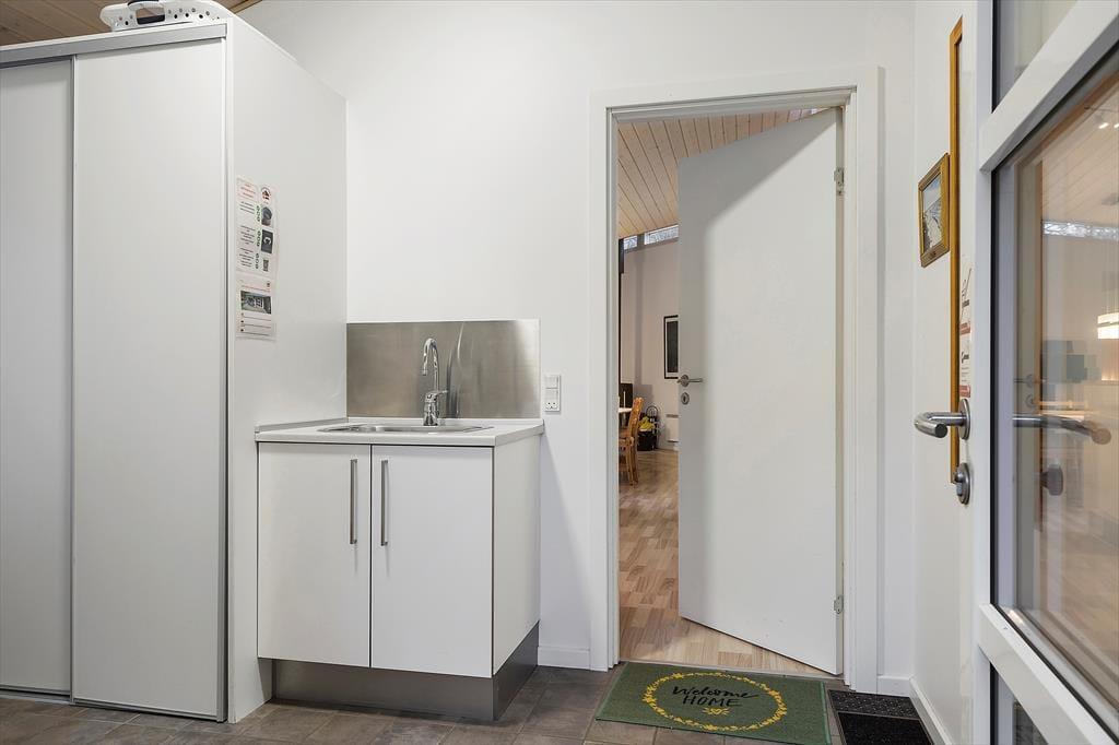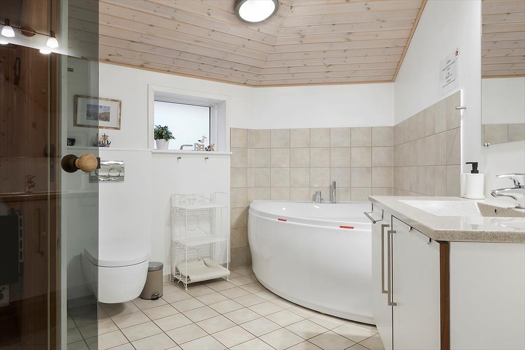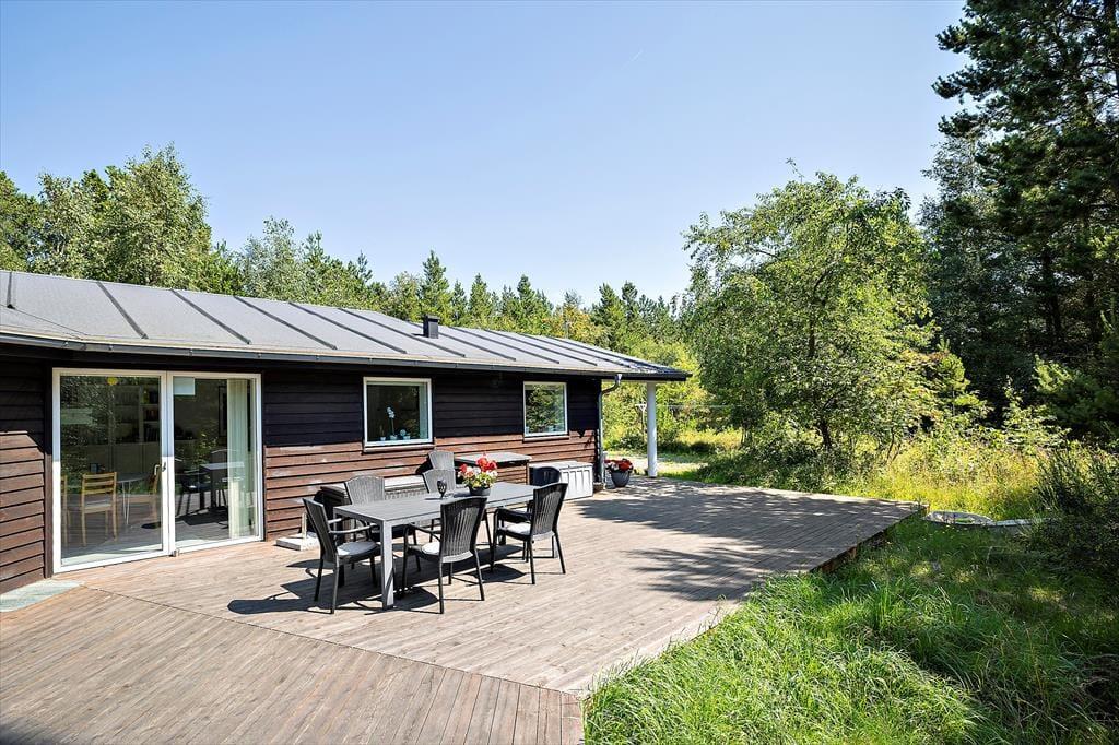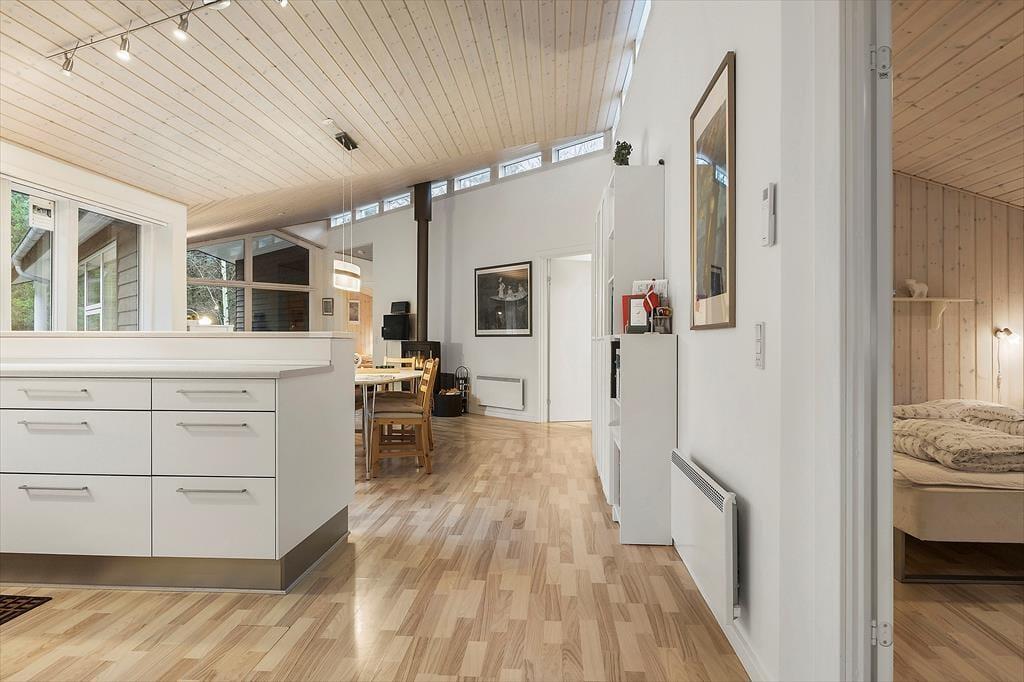 In dem im Jahr 2009 erbauten Sommerhaus kannst du dich auf 130 m² ausbreiten; der Innenbereich ist hell und einladend. Der Grundriss bietet zwei Badezimmer und vier Schlafzimmer, wobei letztere alle mit bequemen Doppelbetten und Kleiderschränken ausgestattet sind, sodass sich alle auf einen erholsamen Schlaf freuen können. Eines der Badezimmer hat sogar eine Badewanne und eine Sauna, während im Eingangsbereich auf praktische Lösungen geachtet wurde. Hier gibt es eine Waschmaschine und einen Wäschetrockner sowie viel Platz für Schuhe und Jacken. Die Küche und das schöne große Wohnzimmer stehen in einer offenen Verbindung, in dem du alle zusammenkommen kannst, egal, ob ihr kocht, Brettspiele am Esstisch spielt oder auf dem Sofa mit deiner Lieblingsserie im Fernsehen entspannt und das Feuer im Holzofen genießt.