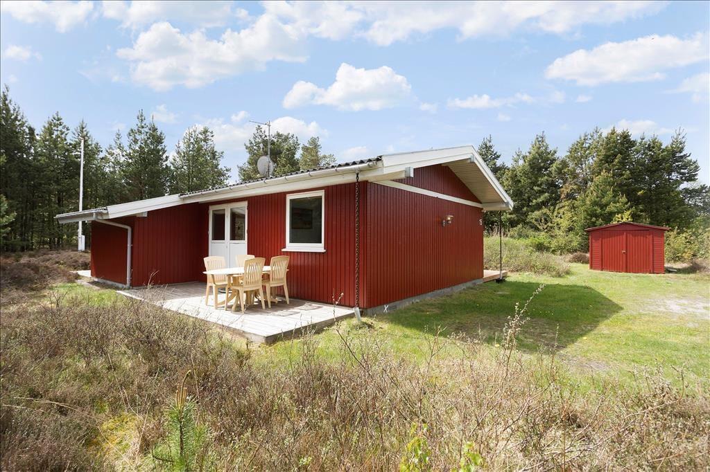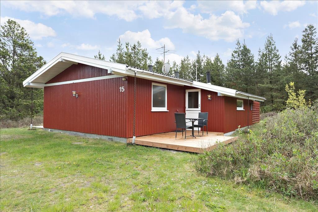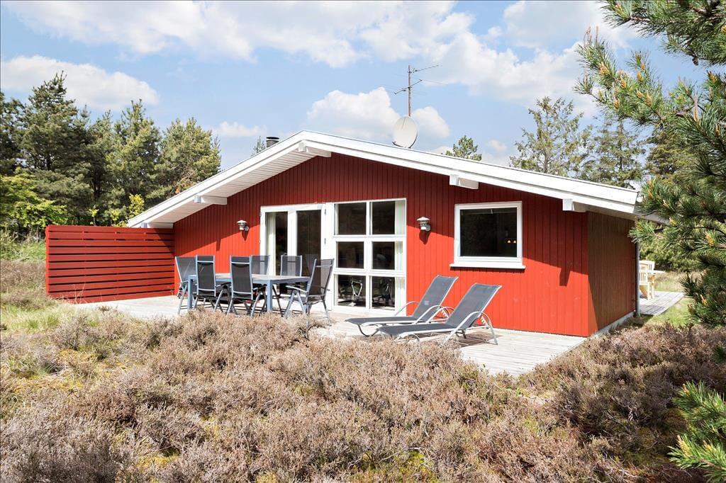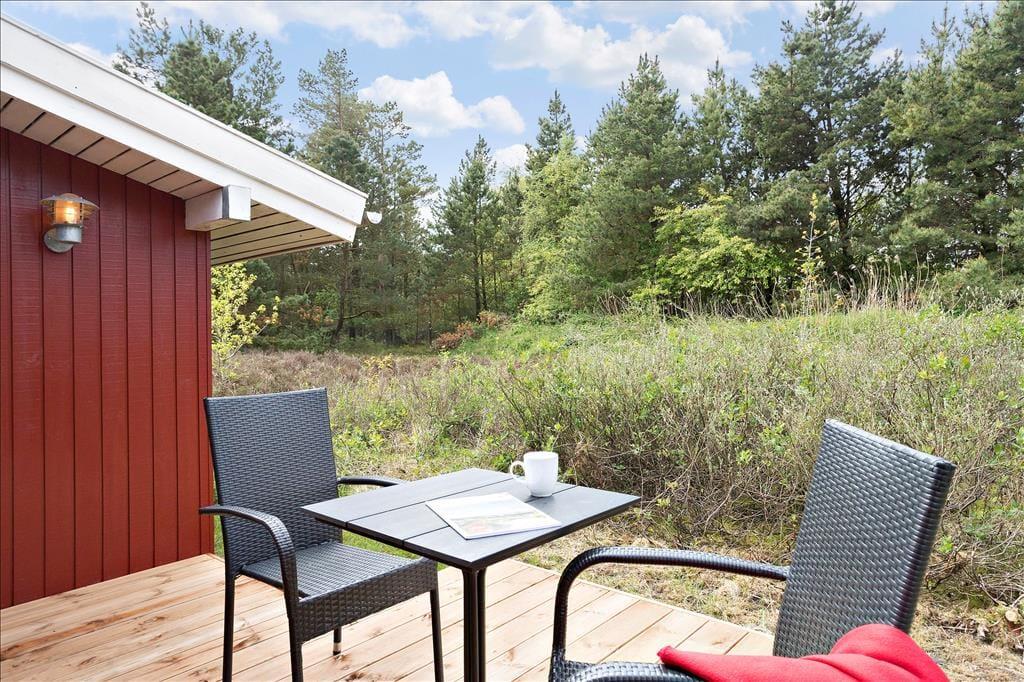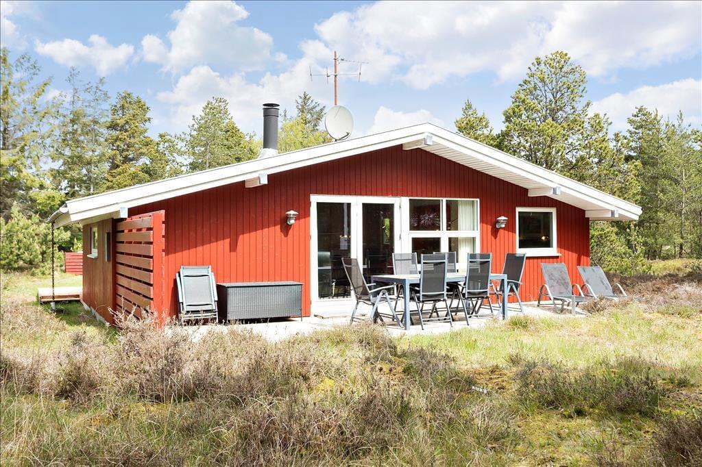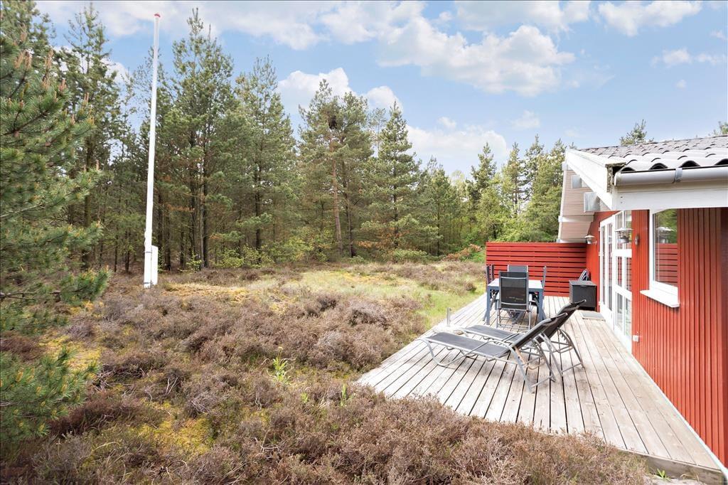 Heide und Kiefern, Vogelgesang und Sonnenschein, Urlaubsfrieden und frische Luft in den Lungen. Dies sind die charakteristischen Merkmale der schönen Umgebung hier am Sønderstrandvej, an dem dieses attraktive Ferienhaus auf einem großen und ungestörten Naturgrundstück liegt.