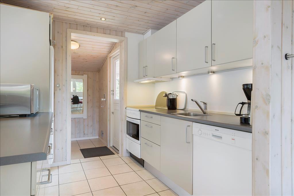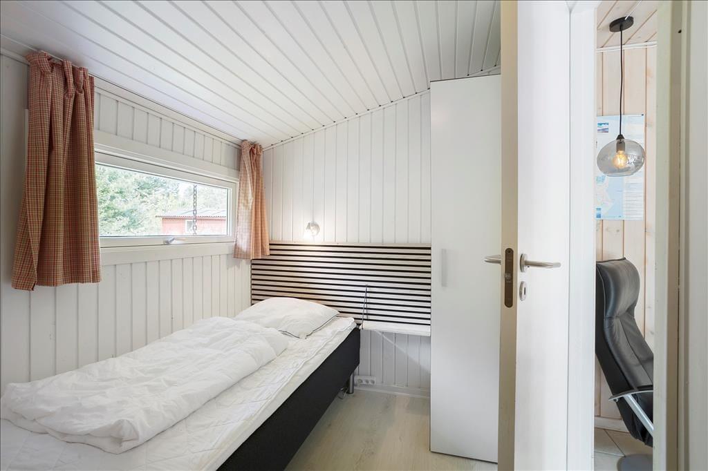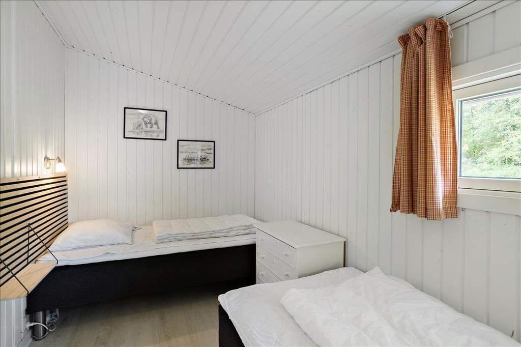 Das klassische Ferienhaus leuchtet mit seiner roten Fassade und den weißen Fensterrahmen schön zwischen all dem Grün, das es umgibt. Im Hausinneren trafst du in bester Ferienhausmanier auf helle Holzvertäfelungen an den Wänden und einen Kaminofen. Zahlreiche Fenster gewähren einen guten Tageslichteinfall.