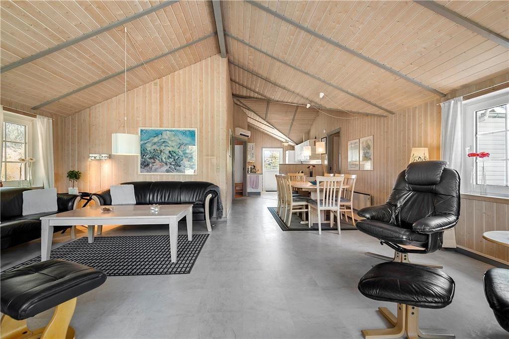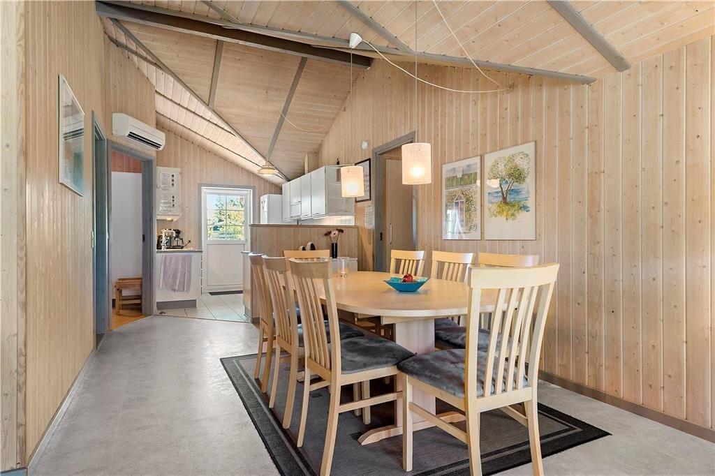 In dem Augenblick, in dem du dieses Haus betrittst, kannst du die gute Atmosphäre spüren, die im Inneren herrscht. Die Stimmung ist leicht und luftig, und die hellen Holzwände, der Brennofen und die bequemen Möbel tragen dazu bei, dem Haus die richtige Urlaubsstimmung zu verleihen. Im Aufenthaltsbereich sorgt die Aufteilung des Raums für einen guten Lichteinfall und gibt dir gleichzeitig die Möglichkeit, gemeinsame Zeit zu verbringen, obwohl du dich mit verschiedenen Dingen in der Küche und im Wohnzimmer beschäftigst. Auch der Rest des Hauses präsentiert sich auf die gleiche durchdachte Weise. Es gibt Kleiderschränke und gute Betten in allen vier Schlafzimmern, und die Gästetoilette sowie das Badezimmer erscheinen sauber und ordentlich. Das Badezimmer ist darüber hinaus mit Whirlpool und Sauna ausgestattet, sodass du nach den Tagesausflügen den Abend mit Wellness und absoluter Entspannung verbringen kannst.