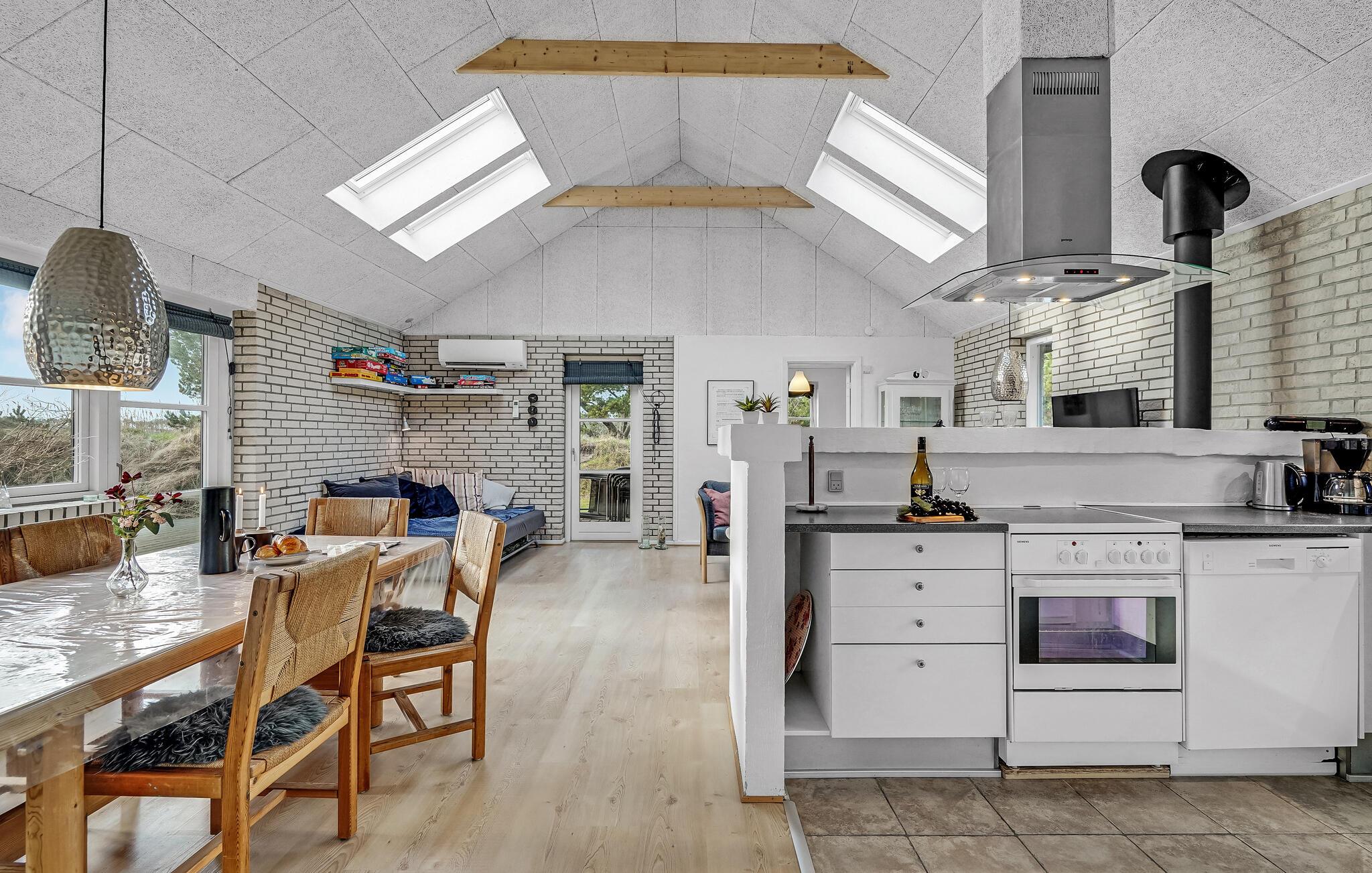 Hier wird besonders Wert auf Funktionalität gelegt. Im Inneren des Hauses erwarten Sie moderne und helle Möbel, eine offene Küche und schöne Badezimmer. Die 2 Schlafzimmer bieten Platz für 6 Gäste. Im Mittelpunkt des Hauses stehen auch Gemütlichkeit und Aktivitäten im Freien, wie zum Beispiel auf dem Beachvolleyplatz.
