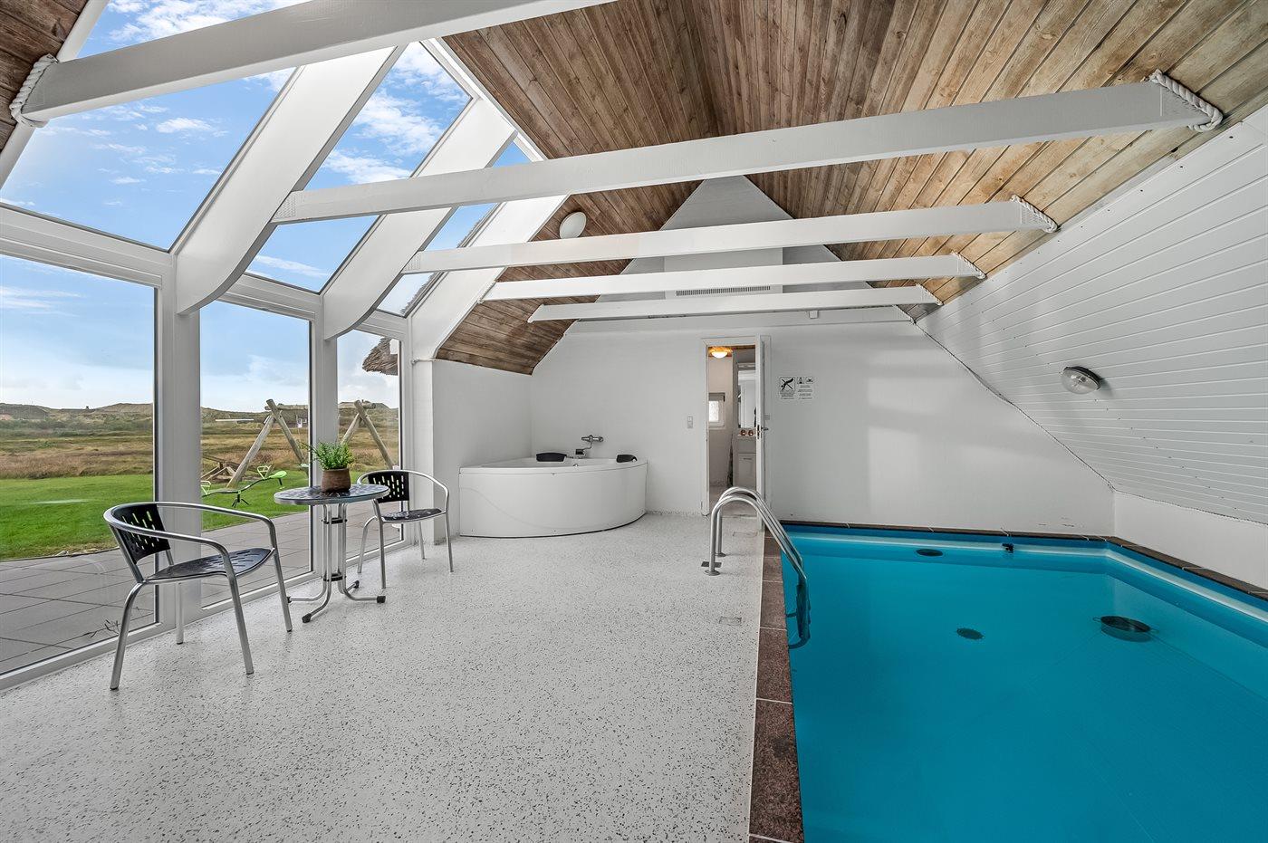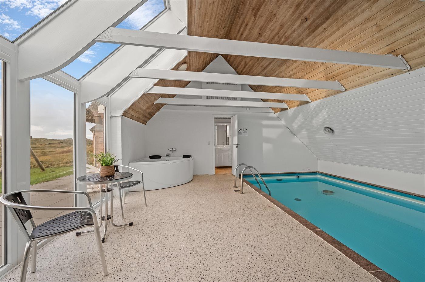 Modernes Ferienhaus mit Pool, Sauna und Meerblick in Søndervig, ideal für Familien und Aktivurlauber.
