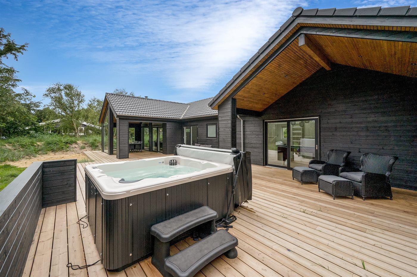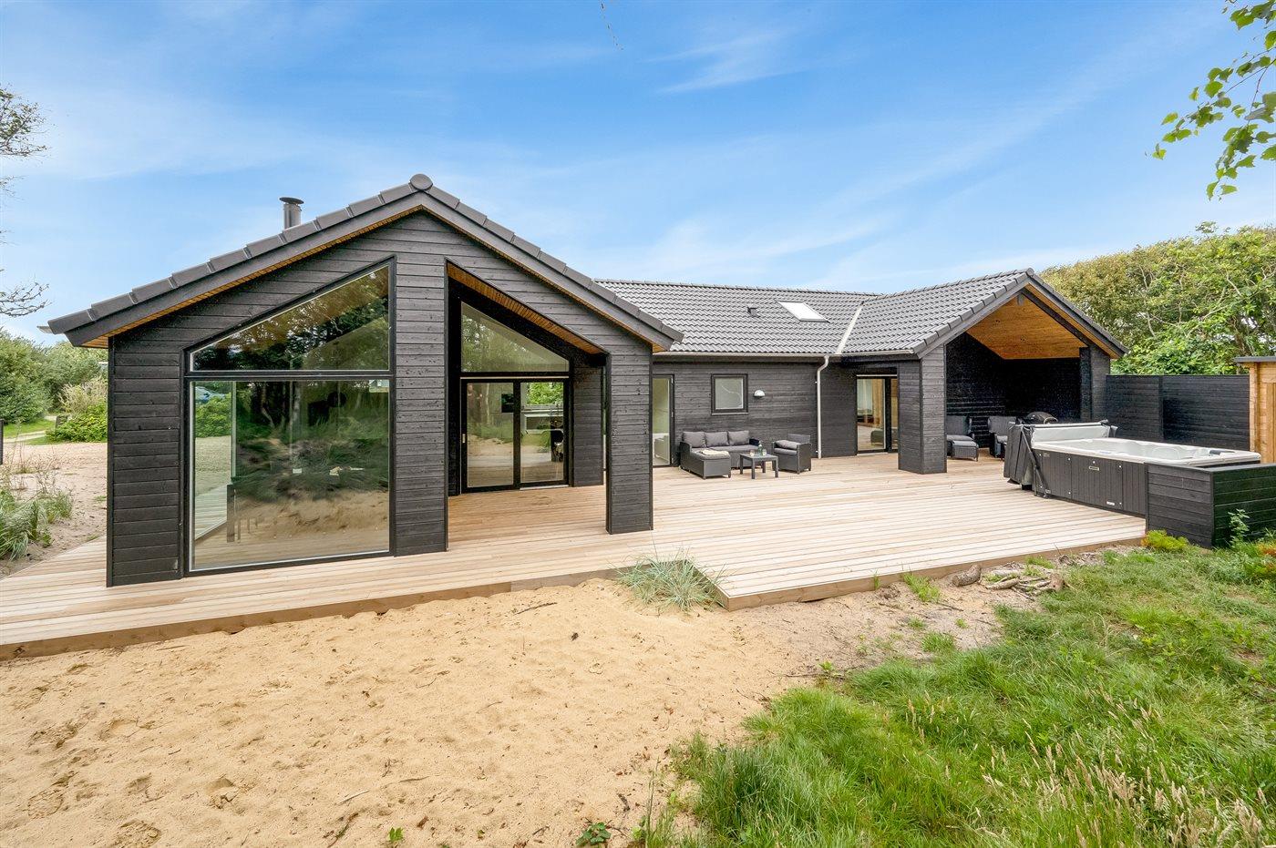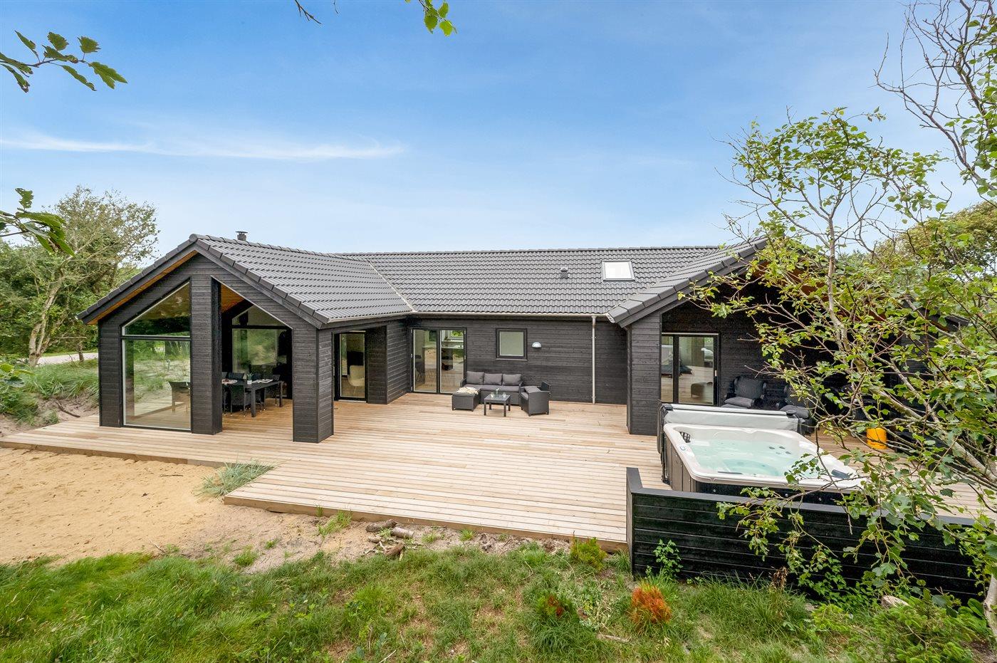 Modernes Ferienhaus in Søndervig mit Aktivitätsraum, Outdoor-Spa und umweltfreundlicher Wärmepumpe für entspannte Urlaubstage.