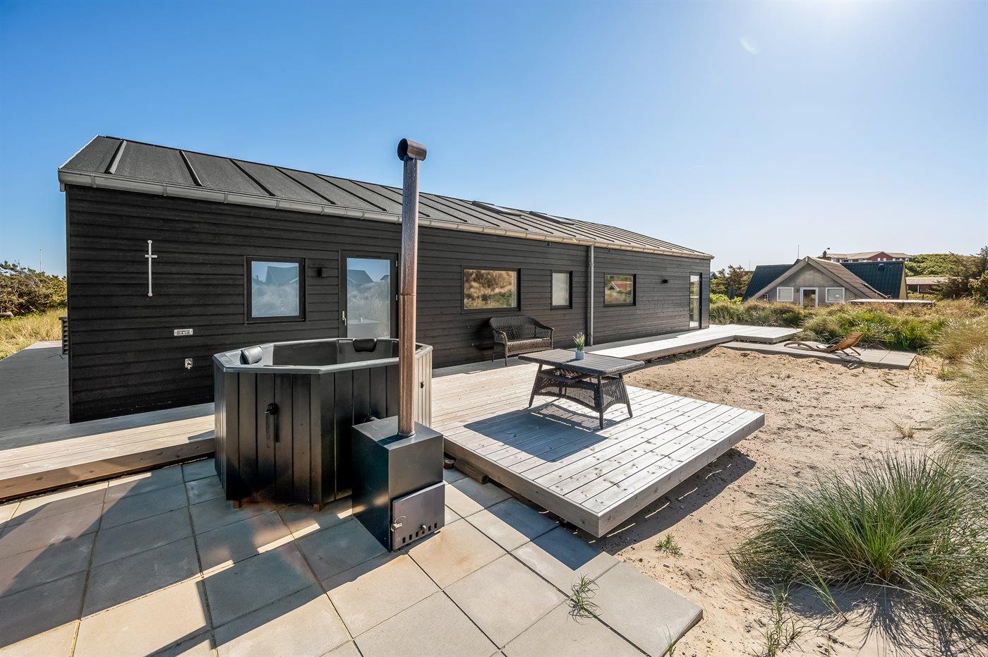 Modernes Ferienhaus in Søndervig, nur 350 m vom Meer, mit Sauna, Hot Tub und Elektroauto-Ladestation.
