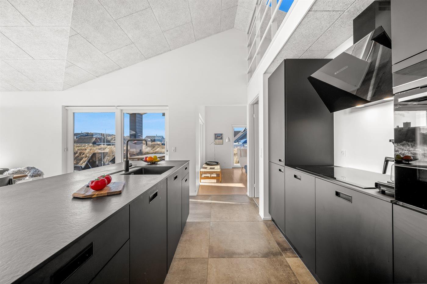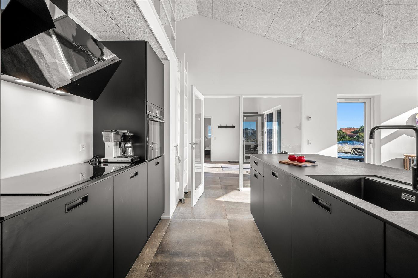 Die Küche ist mit Kühlschrank ausgestattet. Außerdem gibt es 4 Induktions-Kochzonen, Umluftofen sowie Geschirrspüler.