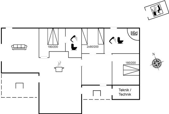 Die Schlafplätze verteilen sich auf 3 Schlafräume. 4 Schlafplätze in Doppelbetten. 2 Schlafplätze in Einzelbetten.