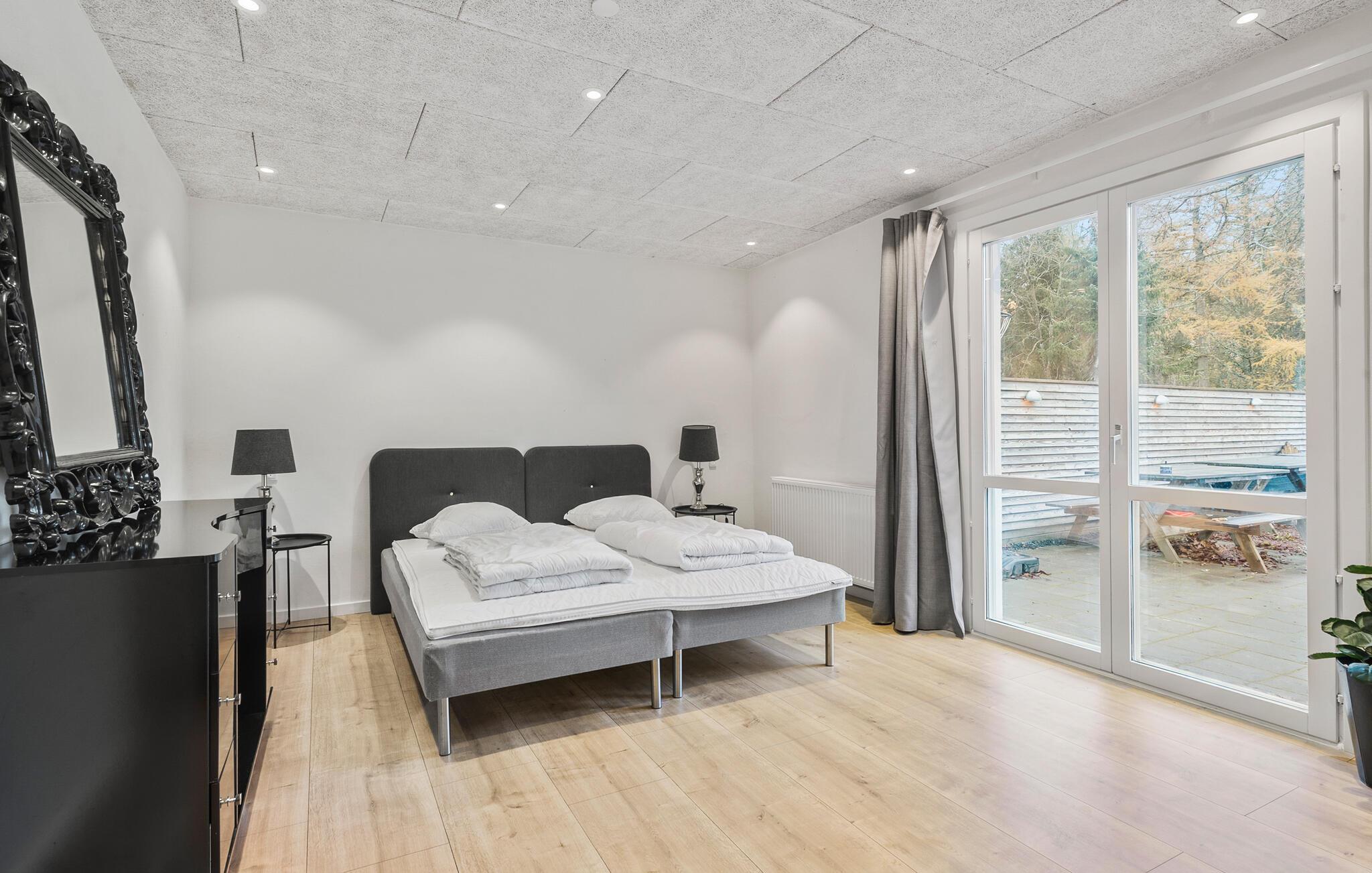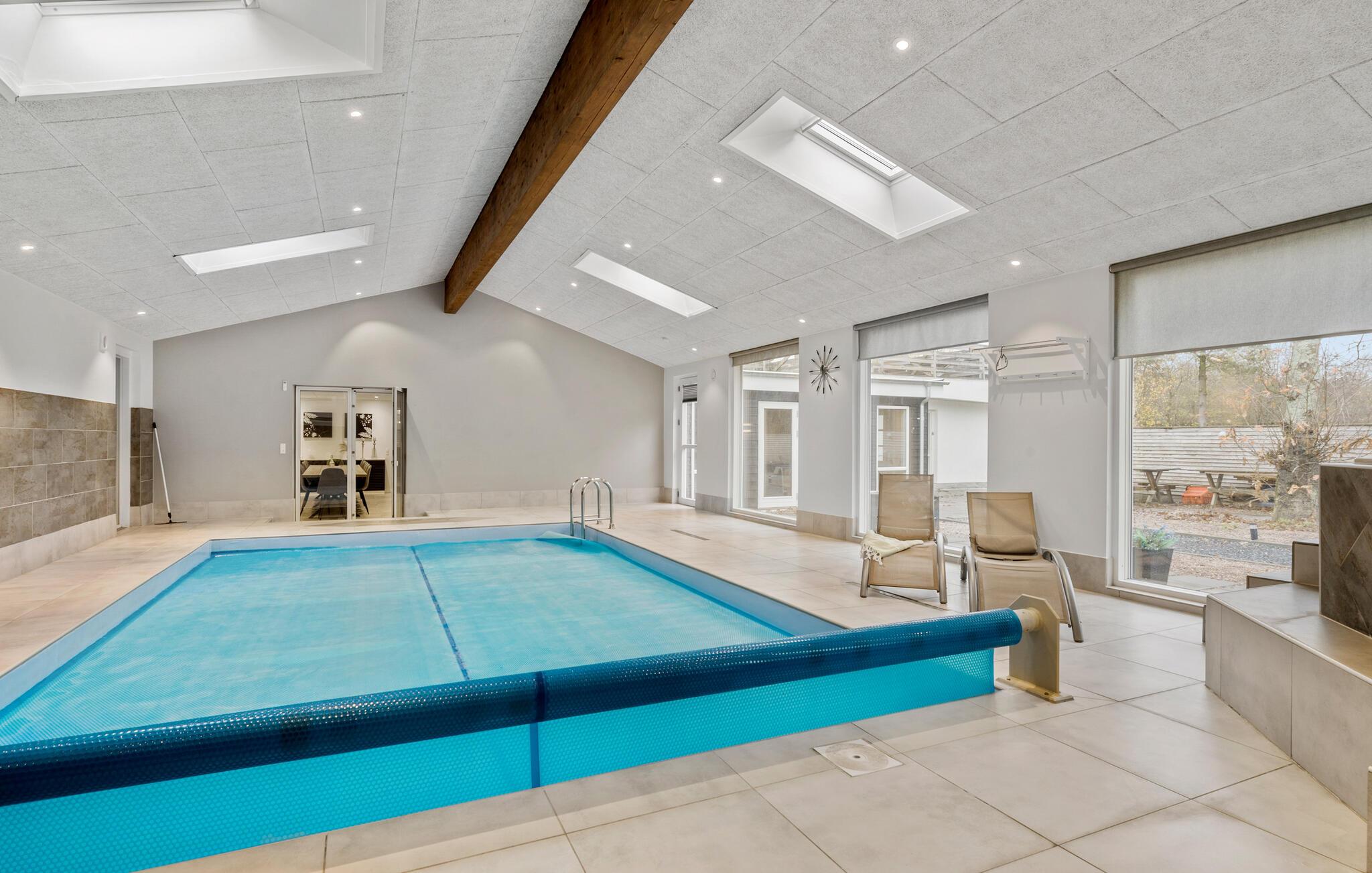 Modernes Ferienhaus mit Innenpool, Sauna und großer Terrasse in Søbylund, ideal für Familien und Gruppen.
