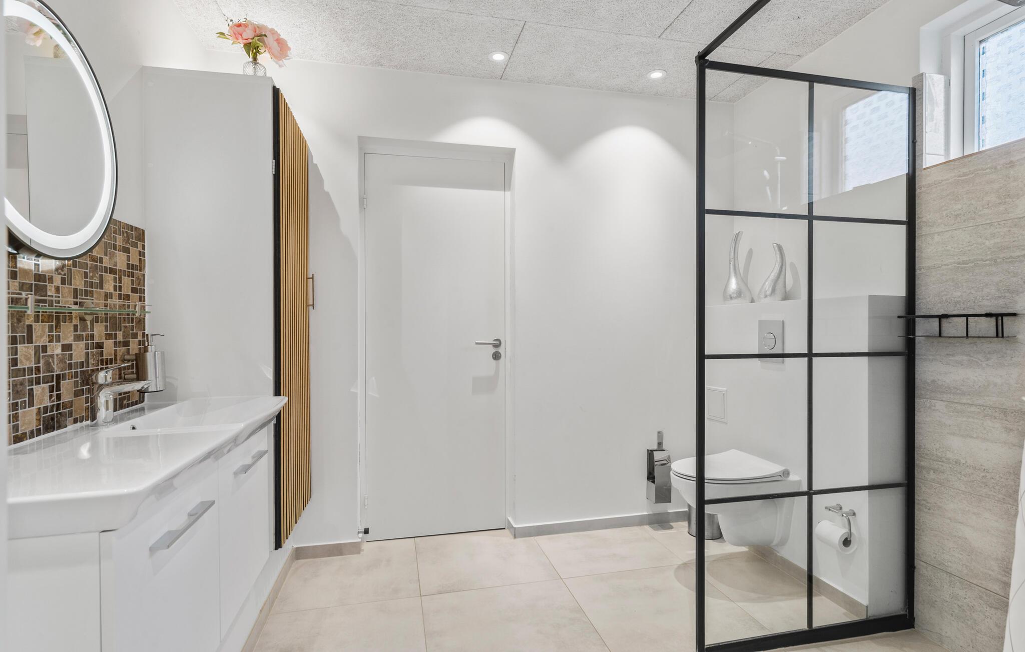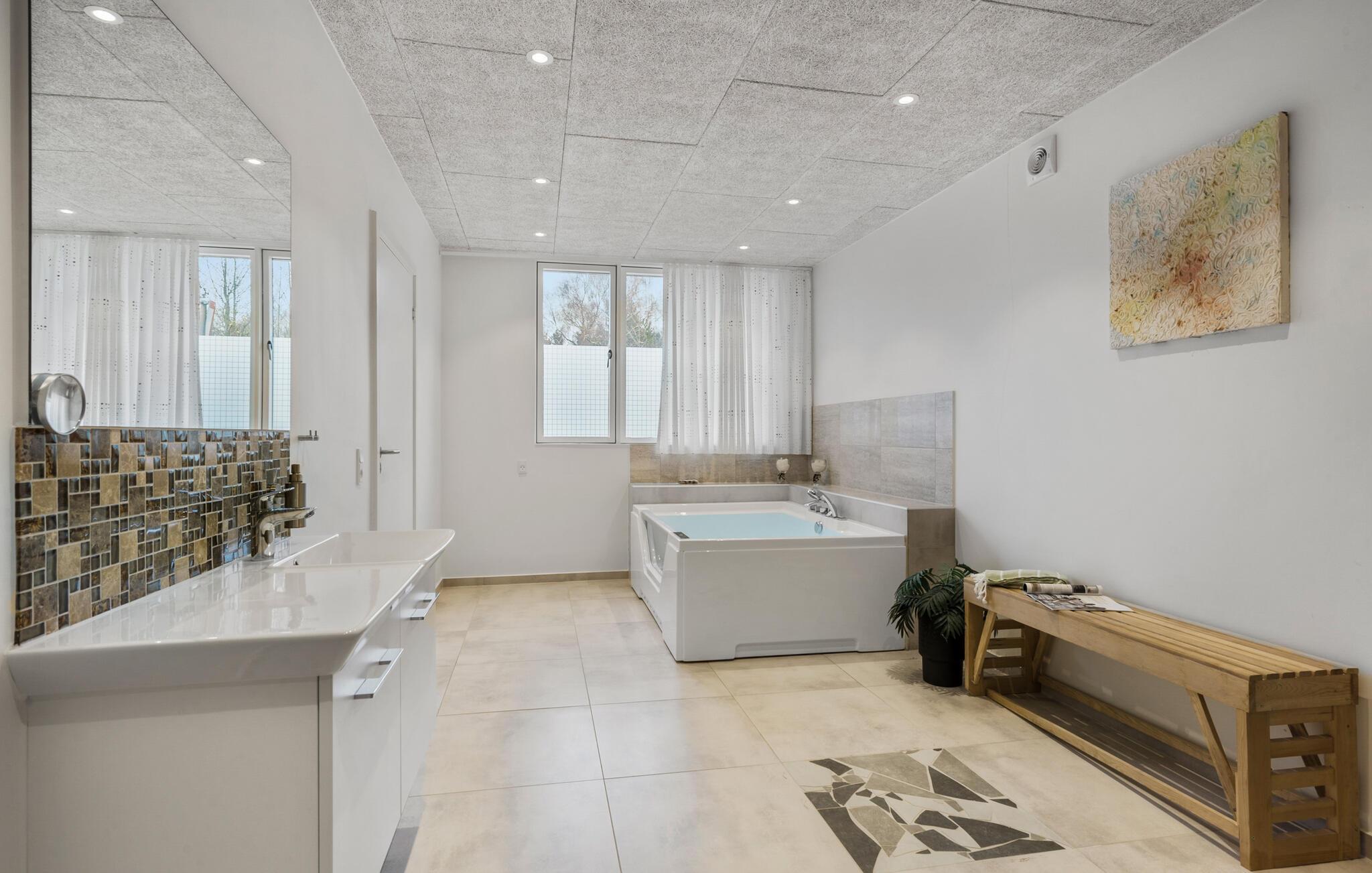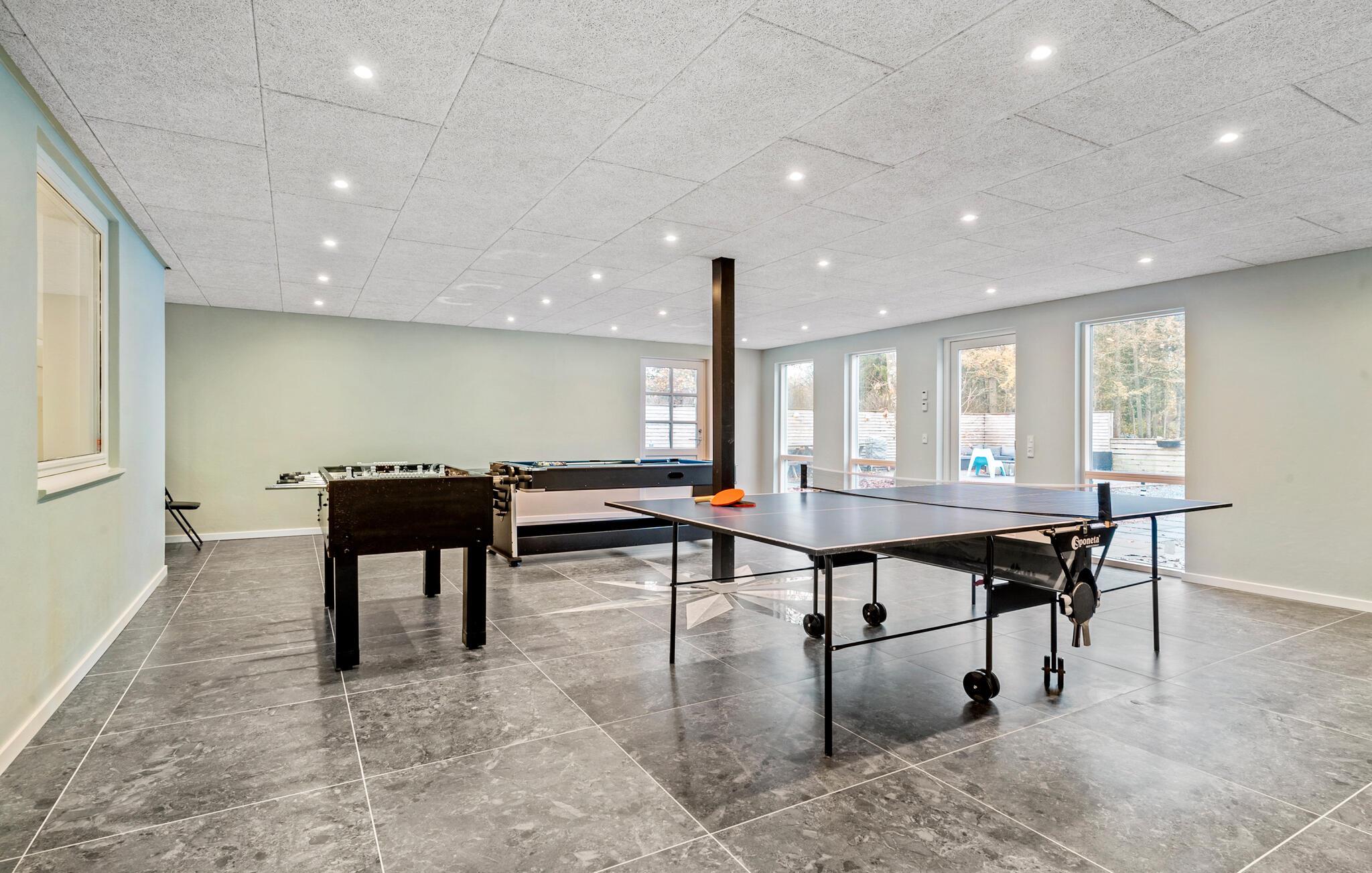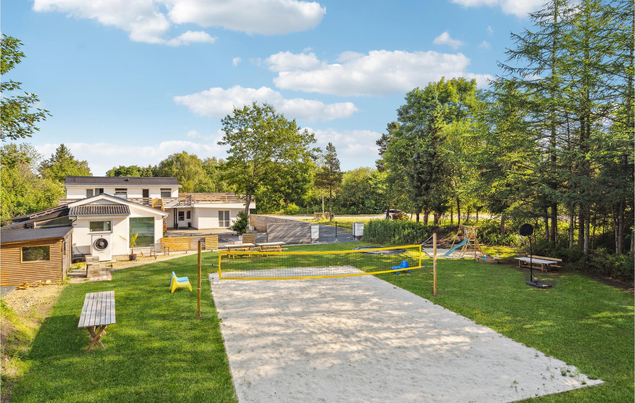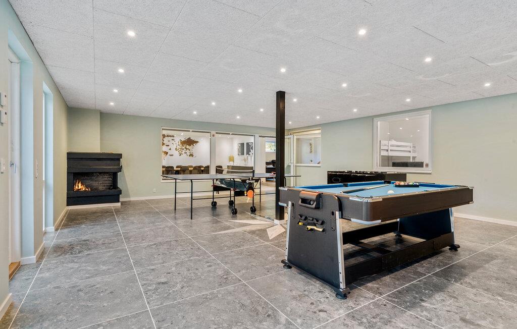 Kommen Sie zusammen mit Ihrer Großfamilie oder mehreren befreundeten Familien nach Søbylund und verbringen einen unvergesslichen Urlaub in dieser tollen Unterkunft, die keine Ihrer Wünsche offenlässt. Erleben Sie das große Haus und machen die offene Küche, mit Anschließenden Wohnbereich und Esszimmer zu Ihrem natürlichen Treffpunkt. Genießen Sie die Zeit beim Kochen, Relaxen oder Spielen und blicken dabei durch das Fenster auf den Innenpool. Das ist eines der Highlights des Hauses. Egal bei welchem Wetter können Sie hier unbegrenzt Badespaß erleben, während Ihre Kinder im Wasser spielen, können Sie es sich im Whirlpool oder in der Sauna bequem machen und ein abkühlendes Bad in der Wanne nehmen. Freuen Sie sich auch auf die riesige Terrasse im 1. Stockwerk, die Ihnen einen beruhigenden Ausblick auf den Wald und über den Garten und Ihnen beim Sonnenbaden das richtige Ambiente bietet. Aber auch der Garten mit weiteren Terrassen und einen Spielplatz für die Kinder lädt Sie zum Verweilen ein.