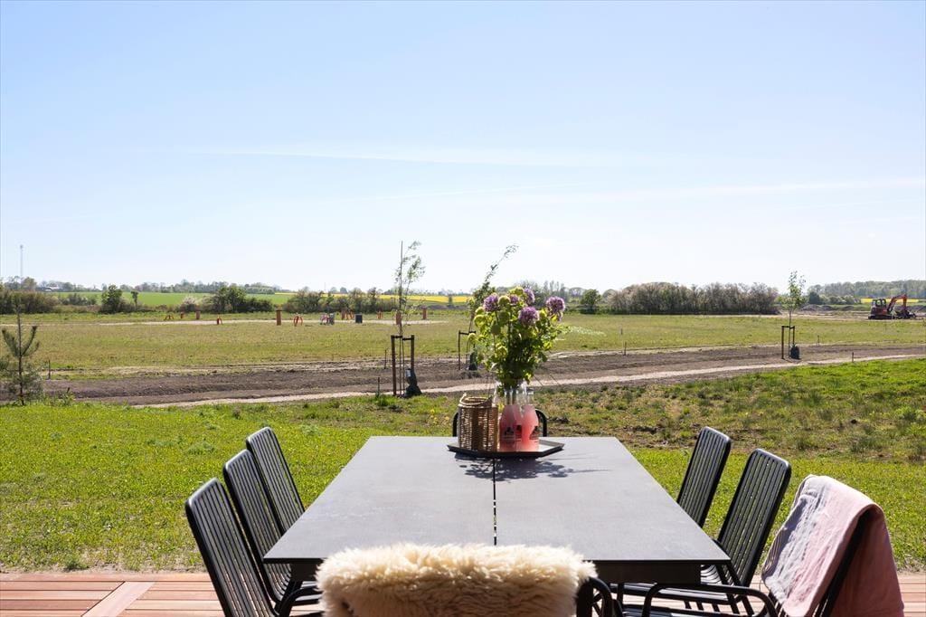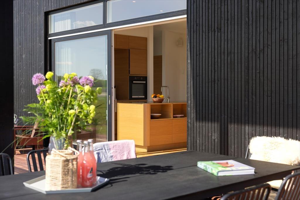 Die Terrasse wird schnell zum Lieblingsplatz – für den Morgenkaffee, ein Sonnenbad oder laue Sommerabende. Sie ist harmonisch in das Haus integriert, sodass Innen- und Außenleben ineinander übergehen.