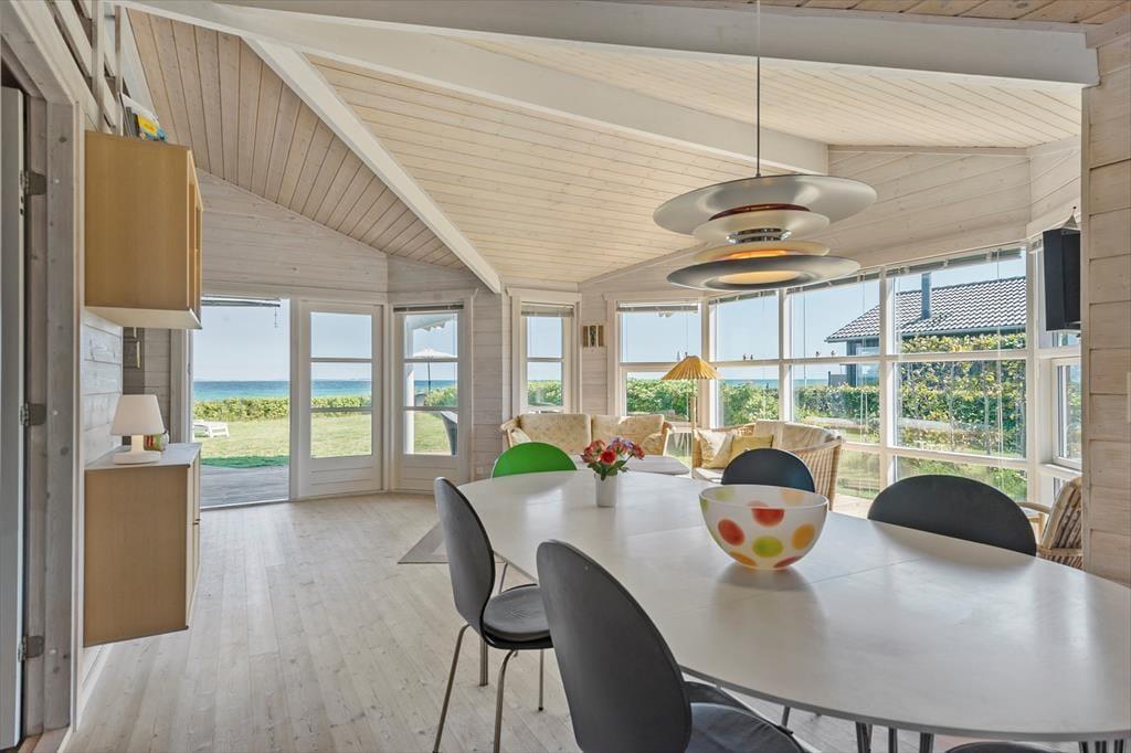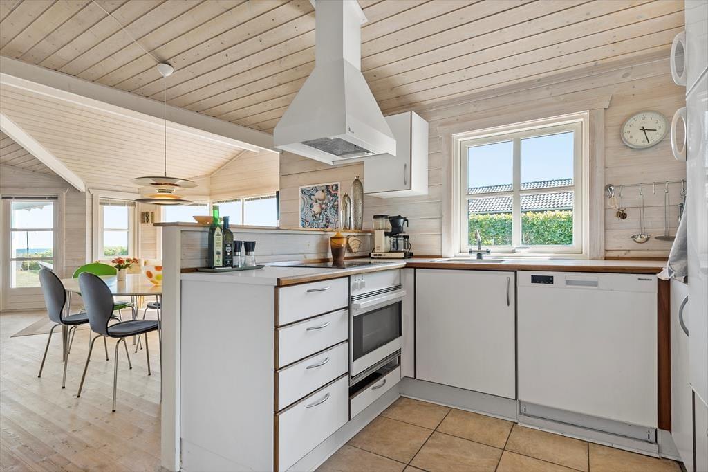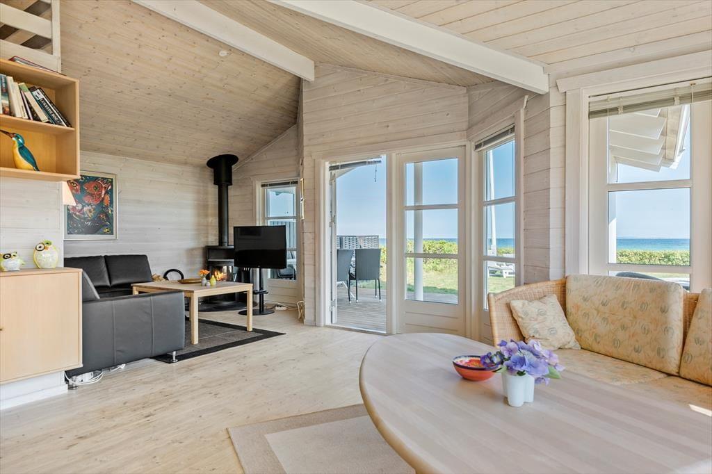 Freu dich auf dieses reizvolle Ferienhaus, dessen helle Wohnatmosphäre einen perfekten Rahmen für erholsame Urlaubstage bildet! Das Haus begrüßt dich mit einem offen kombinierten Küchen-, Wohn- und Essbereich, der zum gemeinsamen Kochen und zu vergnügten Stunden in geselliger Runde einlädt. Die großen Fenster bedingen einen tollen Tageslichteinfall und verwöhnen mit einem hübschen Blick über die Ostsee, der ganz bis zu den Inseln Tunø und Samsø reicht. Mit drei geräumigen Schlafzimmern bietet dir das Mietobjekt gute Rückzugs- und Schlafmöglichkeiten. An kühlen Abenden sorgt der im Wohnraum platzierte Kaminofen für behagliche Wärme. Dieses Urlaubsdomizil bietet alles, was du brauchst, um dich vom ersten Moment an heimisch und wohl zu fühlen.