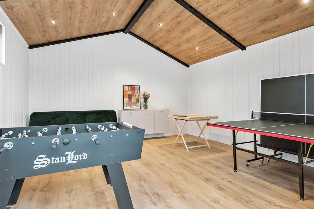 Träumen Sie von einem Urlaub voller schöner Erlebnisse und wertvoller Zeit miteinander? Dieses neu gebaute Ferienhaus nahe dem Saksild Strand bietet den perfekten Rahmen für entspannte und erlebnisreiche Tage – sei es beim Wettkampf im Aktivitätsraum, beim Entspannen im Whirlpool oder bei einem gemütlichen Grillabend auf der Terrasse. Hier gibt es viel Platz für Groß und Klein – ein Ort voller Geborgenheit, Lachen und unvergesslicher Momente.