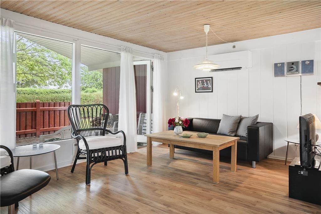Es gibt viele Möglichkeiten, das dänische Sommerwetter zu genießen. Tritt auf die Terrasse und genieße dein Abendessen auf der überdachten Terrasse, auch wenn der Abendtau sich auf die Gräser senkt, oder genieße eine Pause in der Sonne auf der Sonnenterrasse. Sowohl die offene als auch die überdachte Terrasse bieten Platz für alle Familienmitglieder und Freunde, und das große Grundstück lädt zu Spiel und Geselligkeit im Freien ein. Während die Kinder im Garten spielen, können sich die Eltern bei ihrem Morgenkaffee entspannen und den Blick auf das Meer genießen. In Saksild gelegen, ist dieses Ferienhaus der ideale Ausgangspunkt für Spaß und Entspannung im Freien.