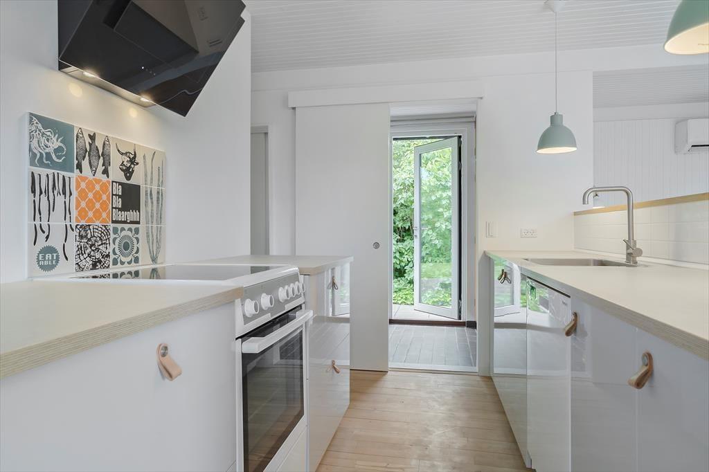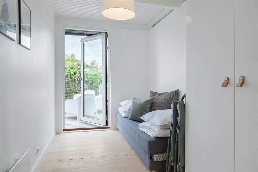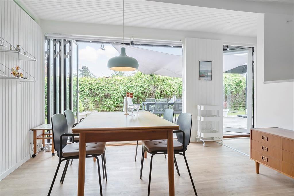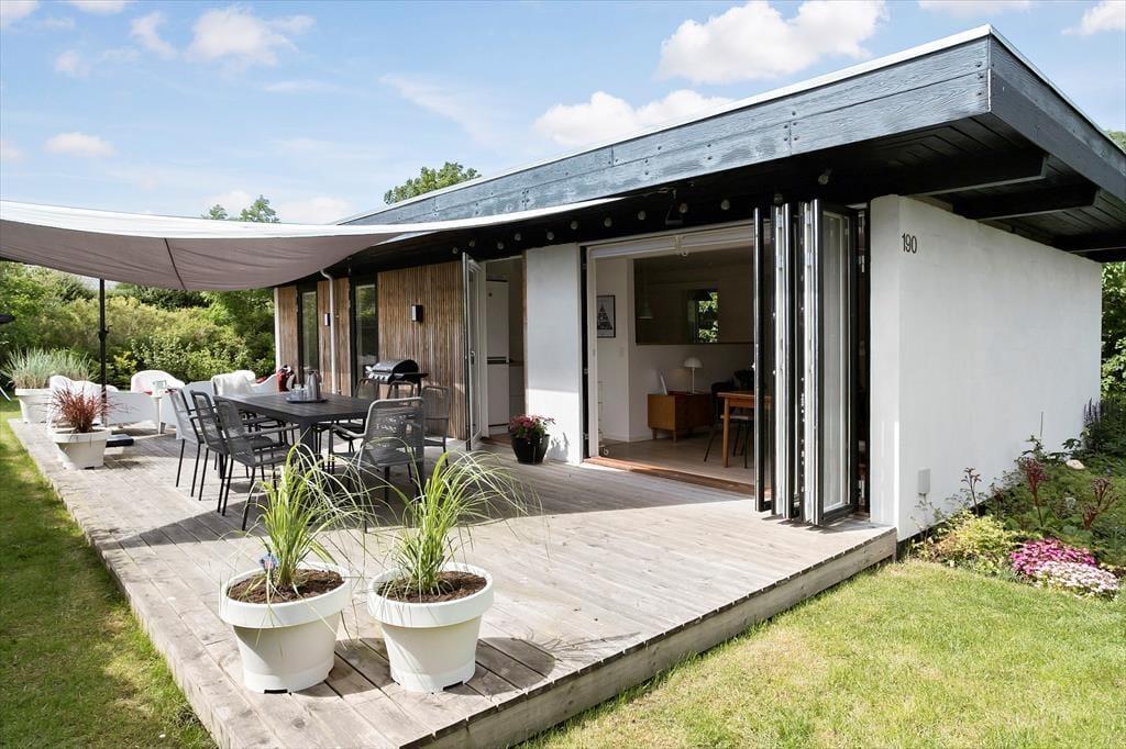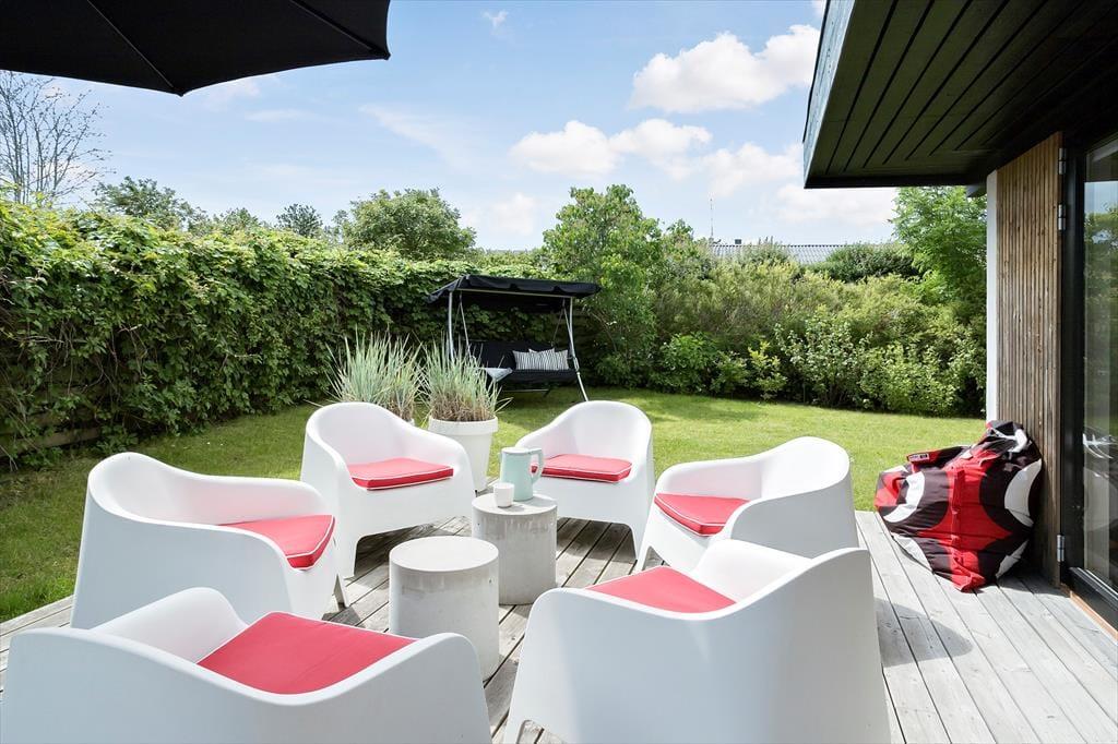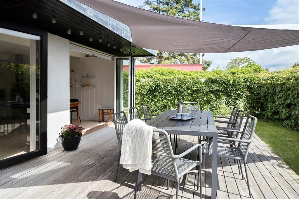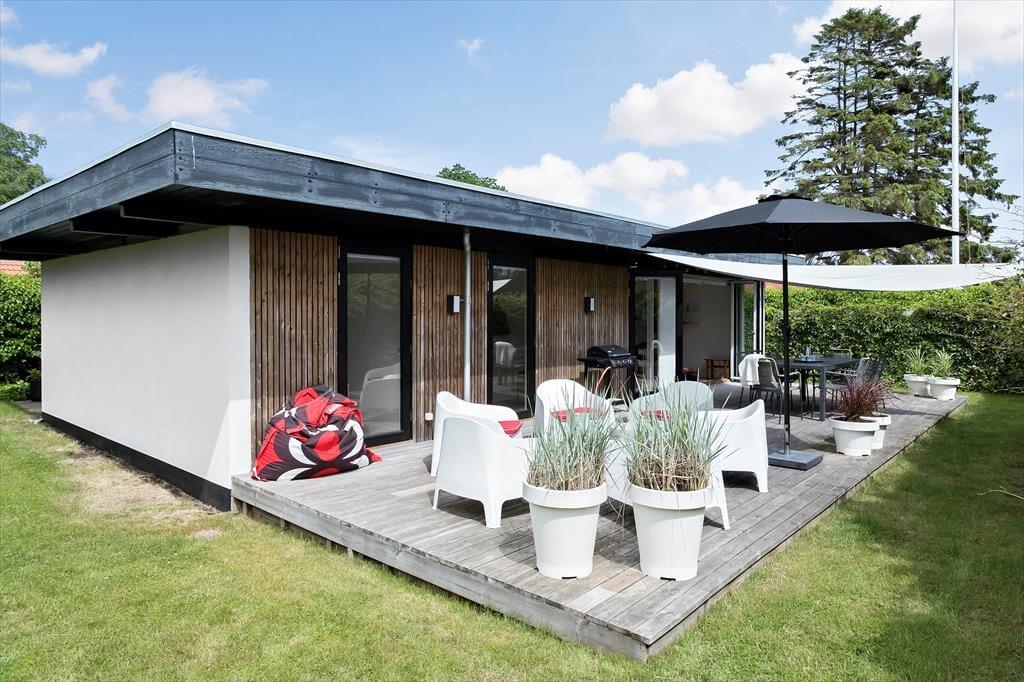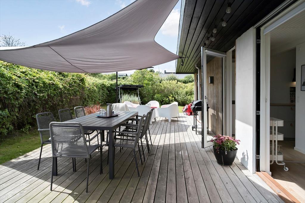 Da Sie nur 175 Meter abseits des Wassers wohnen, hören Sie auf Ihrer großen Terrasse sogar zeitweise das Meeresrauschen. Die Terrasse lässt sich mittels eines Sonnensegels überdachen, wodurch Sie ganz nach persönlicher Vorliebe zwischen Sonne und Schatten wählen können. Dank der kurzen Entfernung zum Strand können Sie jeden neuen Urlaubstag ohne Weiteres mit einem erquickenden Bad in den seichten Ostseewellen begrüßen. Der Garten ist durch Hecken gut abgeschirmt, sodass Sie sich unter freiem Himmel angenehm ungestört aufhalten. Auf der anderen Seite des Weges, also direkt gegenüber, befindet sich Dänemarks älteste Minigolfanlage, bei der Sie nicht nur vergnügt die Schläger schwingen, sondern auch richtig gutes Eis und dergleichen genießen können. Vier bis fünf Mal pro Sommer werden auf der Minigolfanlage Musikveranstaltungen abgehalten – Sie können dann unbemerkt in Ihrem Garten tanzen.