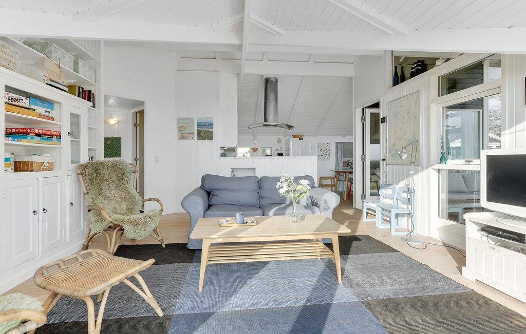 Das Haus ist hell und im ansprechenden Landhausstil eingerichtet. Im Wohnzimmer mit großer Fensterfront können Sie den Blick nach draußen genießen und mit der Familie entspannte Abende verbringen. Die Kinder werden den Alkoven im Essbereich lieben, wohin man sich gut mit einem Buch zurückziehen kann. Dort befinden sich auch zwei der sechs Schlafplätze. Ihnen stehen außerdem zwei Schlafzimmer mit Doppelbetten zur Verfügung. Da es im Haus weder einen Internetanschluss noch Fernsehsender gibt, können Sie komplett vom Alltag abschalten. Sie können jedoch Ihr eigenes Tablet an den Fernseher anschließen.