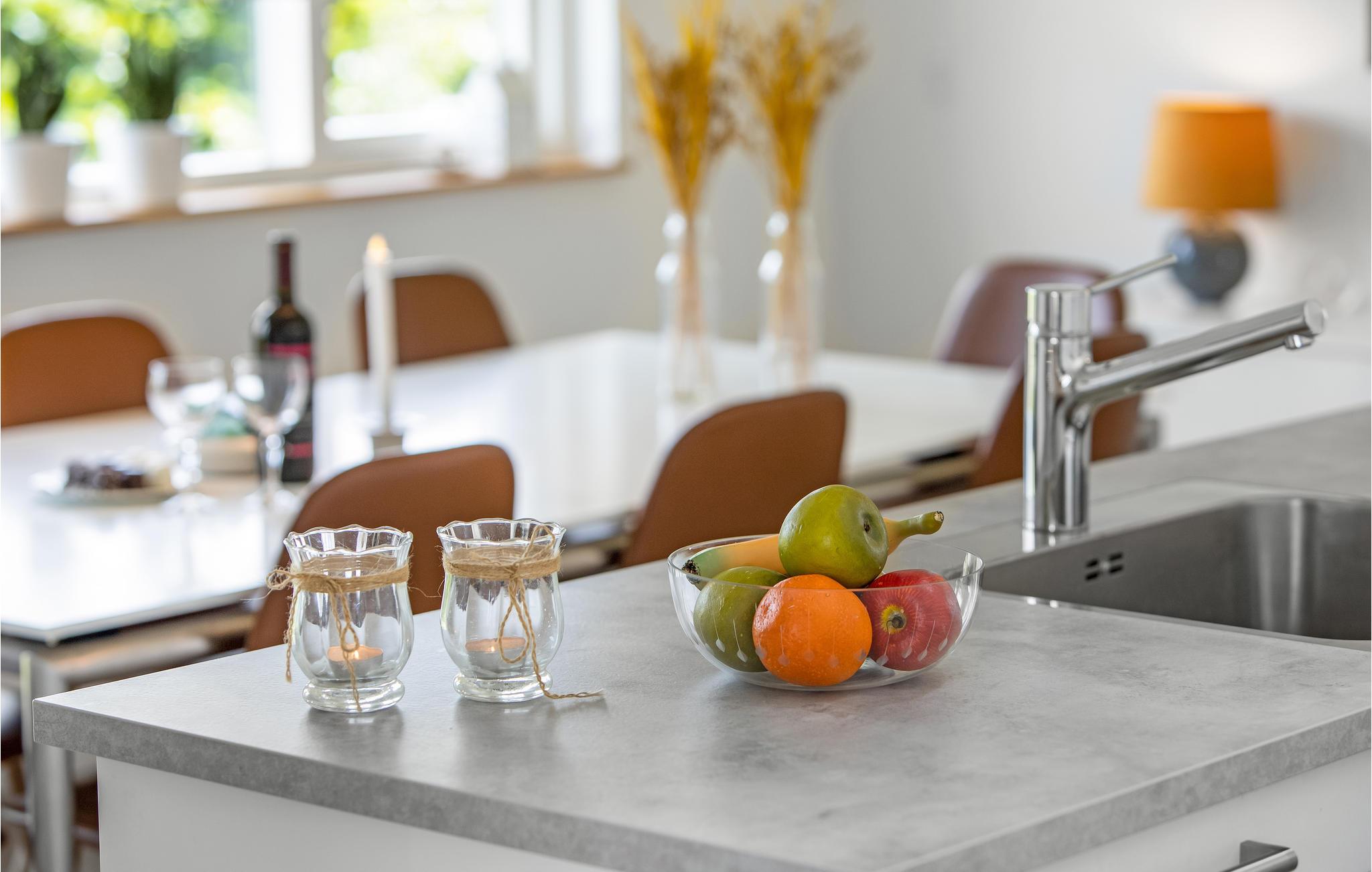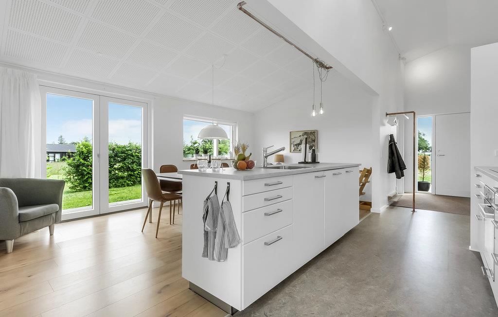 Das Haus befindet sich im beliebten Saksild und verfügt über eine schöne große offene Küche, die mit einem guten Essbereich verbunden ist. Der Raum ist einladend und mit Oberlichtern ausgestattet, die das schönste Licht im Raum bieten. Das Wohnzimmer ist teilweise von der Küche und dem Wohnzimmer mit einer Wand abgeschirmt. Vom Wohnzimmer aus haben Sie Zugang zu einer großen Holzterrasse mit Badezuber. Großes und geräumiges Badezimmer und 3 gute Zimmer, eines mit 2 Etagenbetten mit Platz für 4 Kinder, die anderen Schlafzimmer sind mit Doppelbetten ausgestattet. Das Haus wurde mit der Absicht gebaut, so CO2-neutral wie möglich zu sein. Mit dem Grundgedanken der Nachhaltigkeit wurde eine ehemalige Kindertagesstätte zu diesem Ferienhaus umgebaut. Es gibt ein "Schwesterhaus" in der gleichen Gegend D82128. Genießen Sie die abwechslungsreiche und wunderschöne Natur der Region, sanfte Hügel, kurvenreiche Waldwege und wunderschöne Strände.