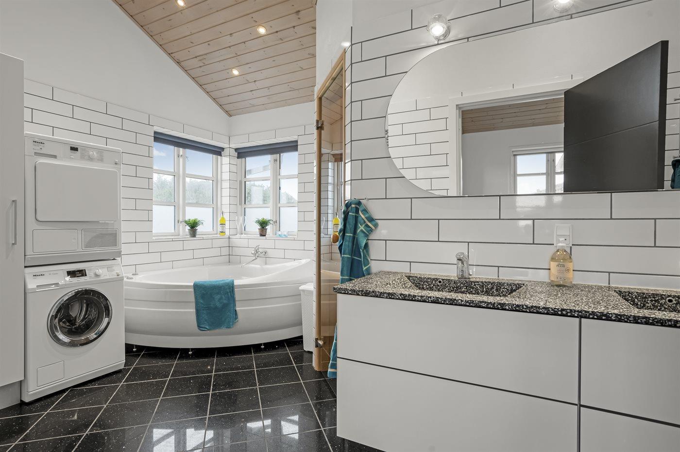 Es gibt 2 Badezimmer mit Duschnische und 2 Toiletten. Fußbodenheizung in 2 Badezimmern. Es steht eine Sauna zur Verfügung in der Sie sich so richtig entspannen können.