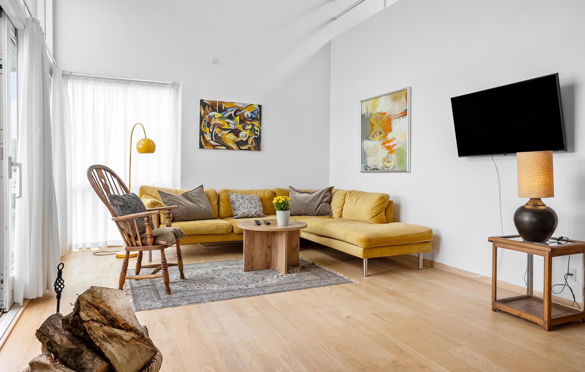 Dieses komfortable Haus ist ebenso geschmackvoll und wie behaglich eingerichtet. Großzügige Fensterfronten lassen viel Tageslicht herein und schaffen eine helle, einladende Umgebung, ideal zum Plaudern oder Musikhören. Zaubern Sie in der modernen Küche köstliche Mahlzeiten, die Sie mit Blick ins Grüne genießen können. Danach lädt das gemütliche Sofa zum Verweilen ein – sei es bei einem Filmabend oder beim entspannten Abschalten.