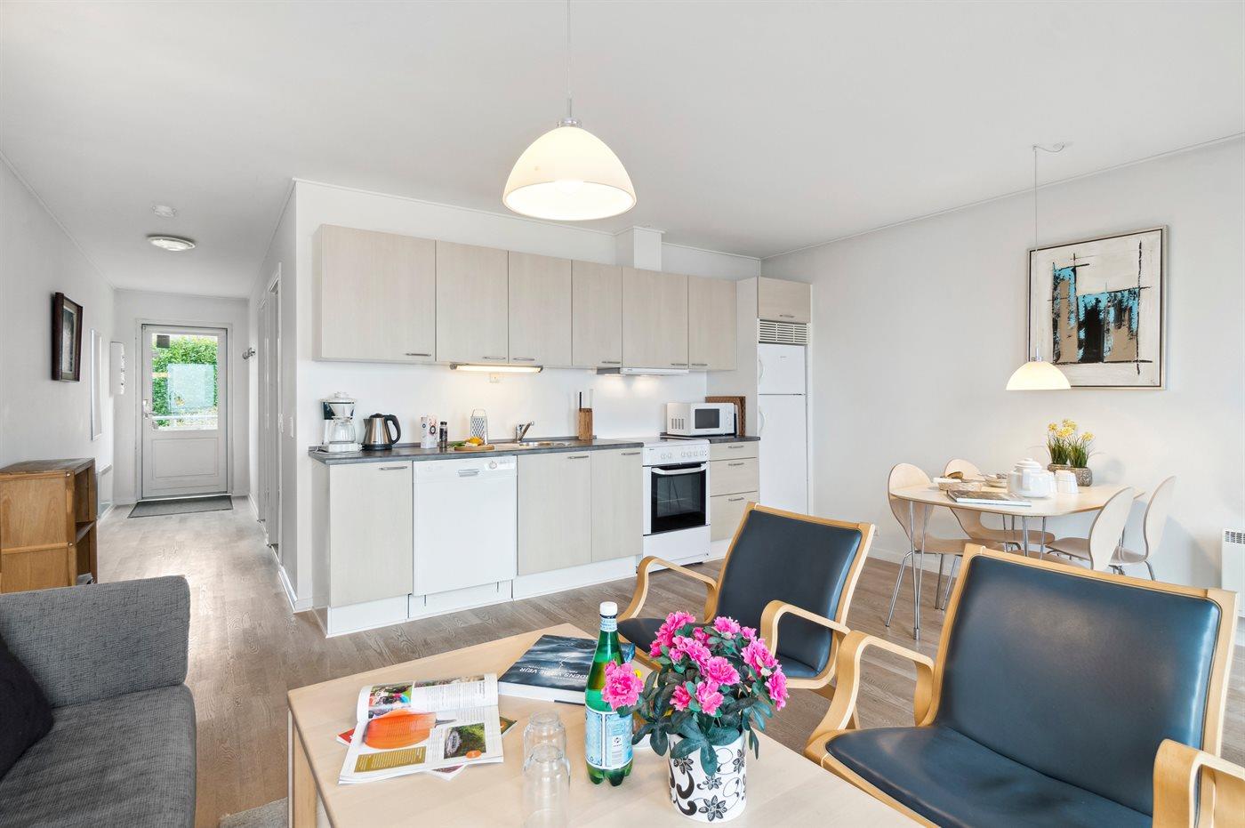 Die Wohnung ist in hellen und freundlichen Farben gehalten, so dass man sich willkommen fühlt, sobald man den hellen, naturfarbenen Boden betritt. Die schöne und gute Einrichtung bietet die besten Voraussetzungen für einen gelungenen Urlaub - und wenn es ums Kochen geht, ist die schöne und offene Küchenabteilung gut ausgestattet.