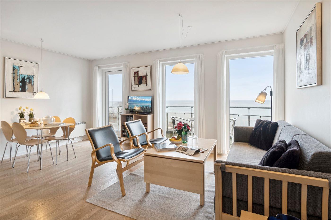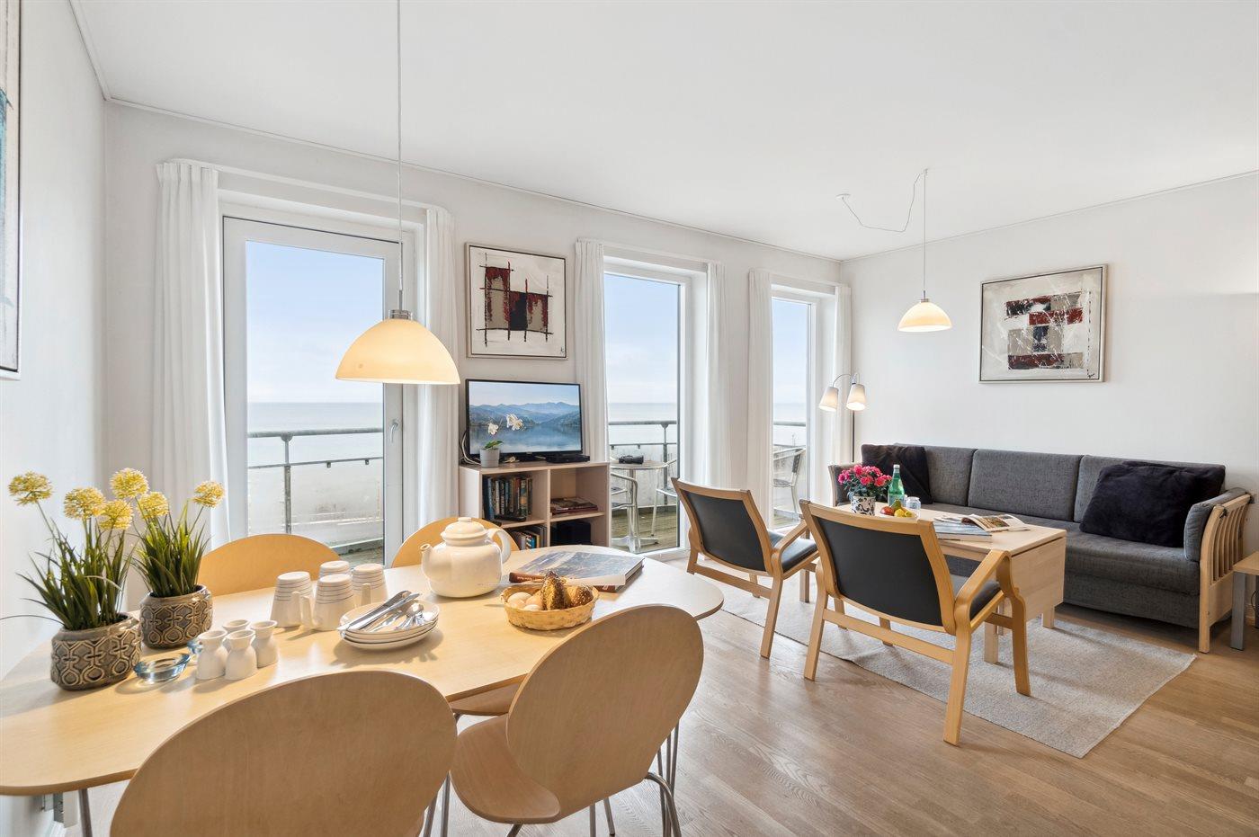 In der Ferienanlage Sjølyst liegt diese Ferienwohnung mit einem fantastischen Blick über die Ostsee - sowohl vom Wohnzimmer als auch vom Balkon aus.