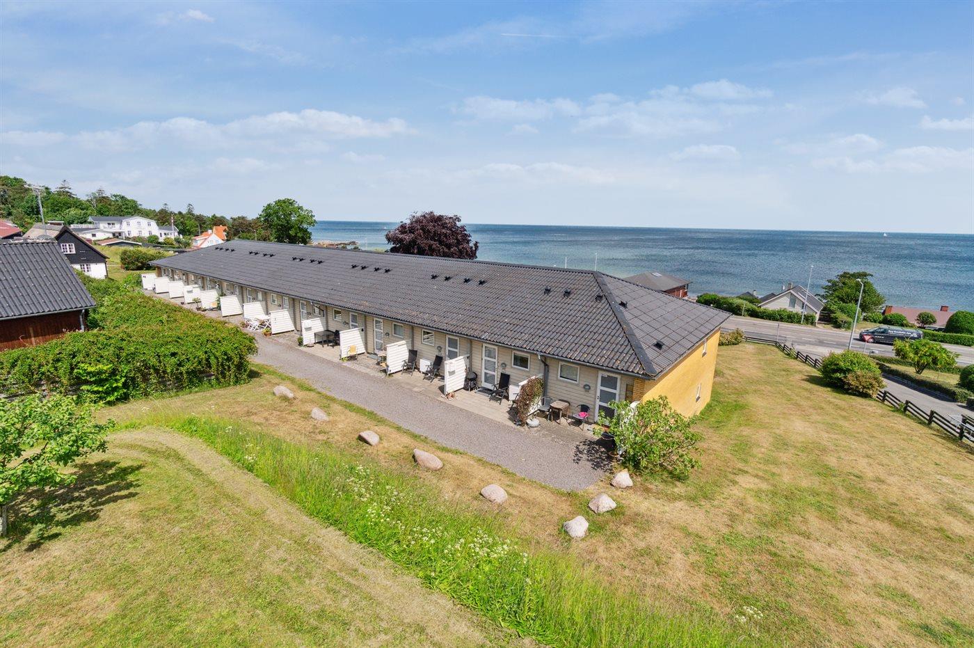 Die "Seeterrassen" besteht aus einer Reihe von Ferienwohnungen in einem ehemaligen Hotelgebäude in Sandkås. Sandkås bietet einen schönen Sandstrand, malerische Felsen, Minigolf, einen Kiosk und ein gutes Restaurant an. Der Ort besticht mit seiner gemütlichen und entspannten Urlaubsatmosphäre, nahe an der schönen Natur und dem Meer. Sandkås liegt zwischen Allinge und Gudhjem, und daher nicht weit von guten Einkaufsmöglichkeiten und Freizeitangeboten sowie dem Rø Golfplatz entfernt.