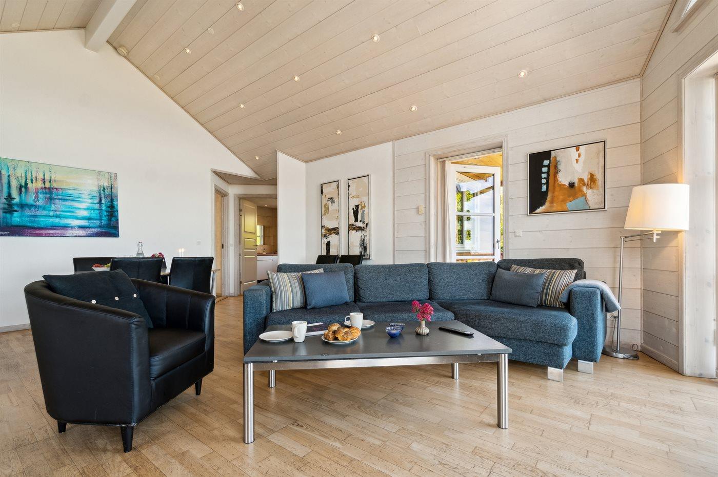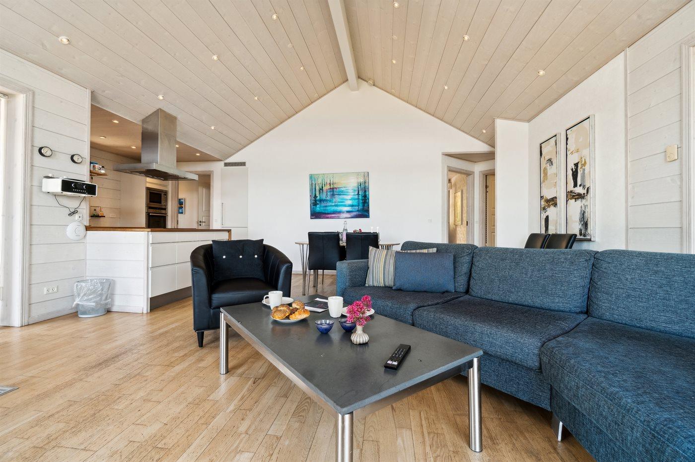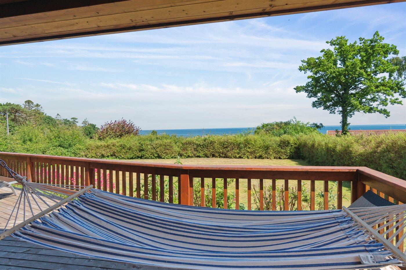 Außergewöhnlich und wirklich schönes Luxusferienhaus mit fantastischer Lage, wo man sowohl vom Haus als auch vom Grundstück eine schöne Aussicht auf die Ostsee hat. Durch die großen Panoramafenster im Wohnzimmer blickst du auf ein gepflegtes, leicht abfallendes Gartengrundstück, und von den zwei Terrassen des Hauses ist die Aussicht ebenso märchenhaft. Insgesamt ist es ein Haus, bei dem man spürt, dass die Einrichtung und Ausstattung die besten Möglichkeiten bieten, einen wirklich erholsamen Urlaub in ruhiger Umgebung zu verbringen - in der Nähe der beeindruckenden Natur des Storedalen.