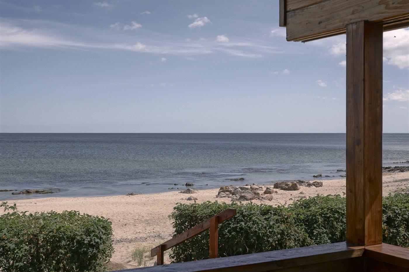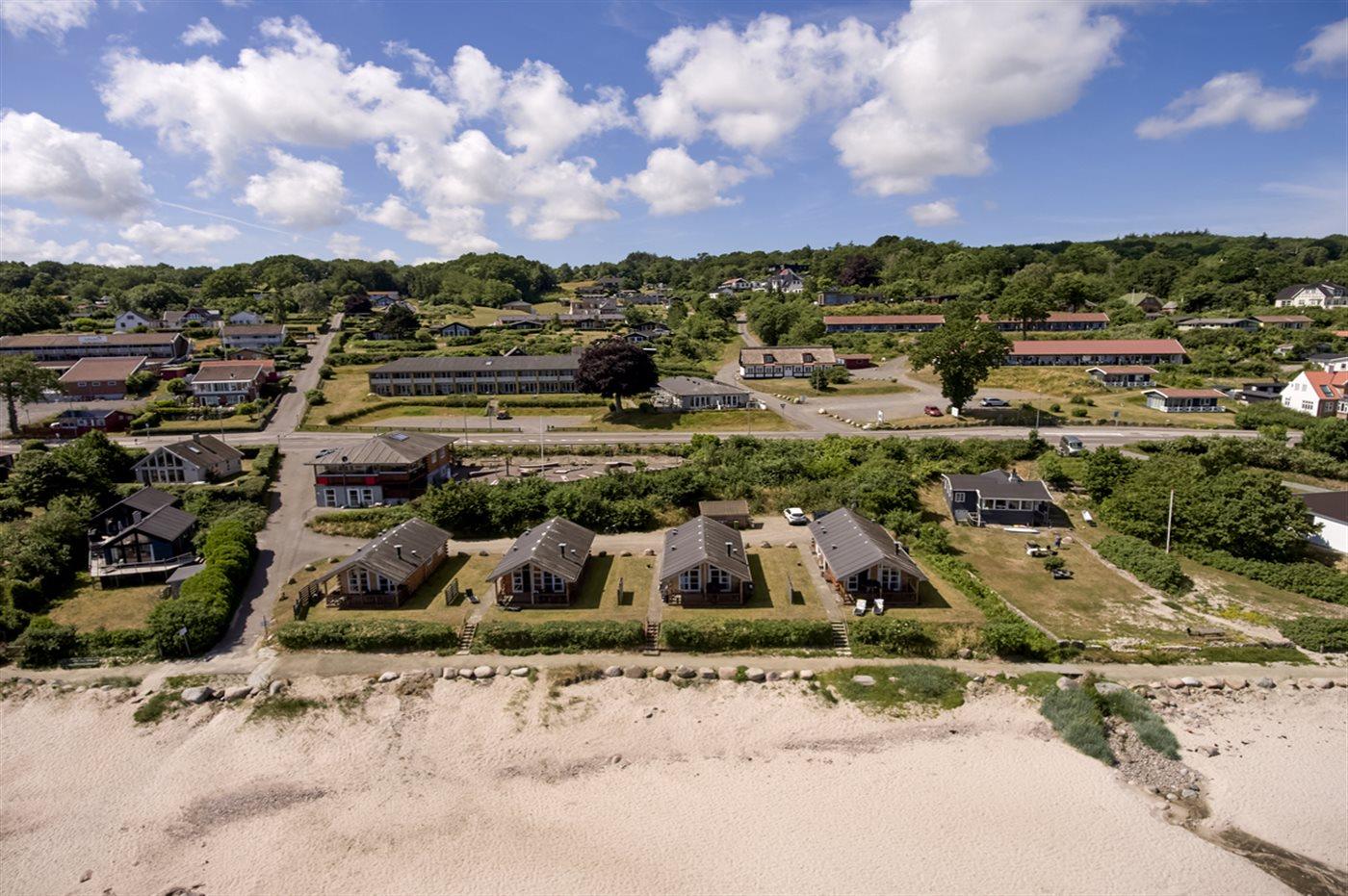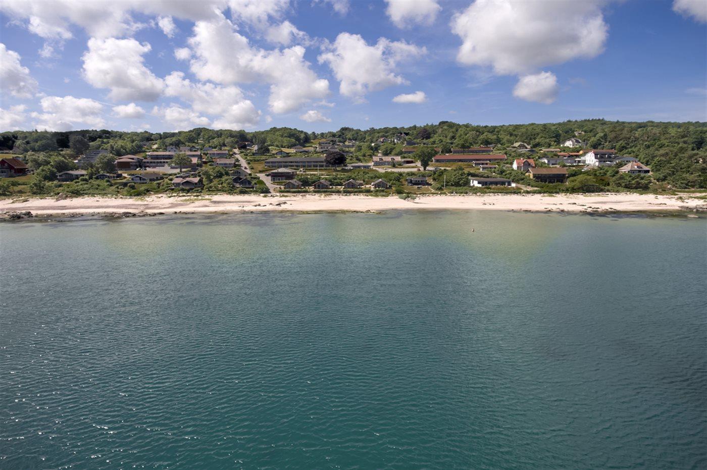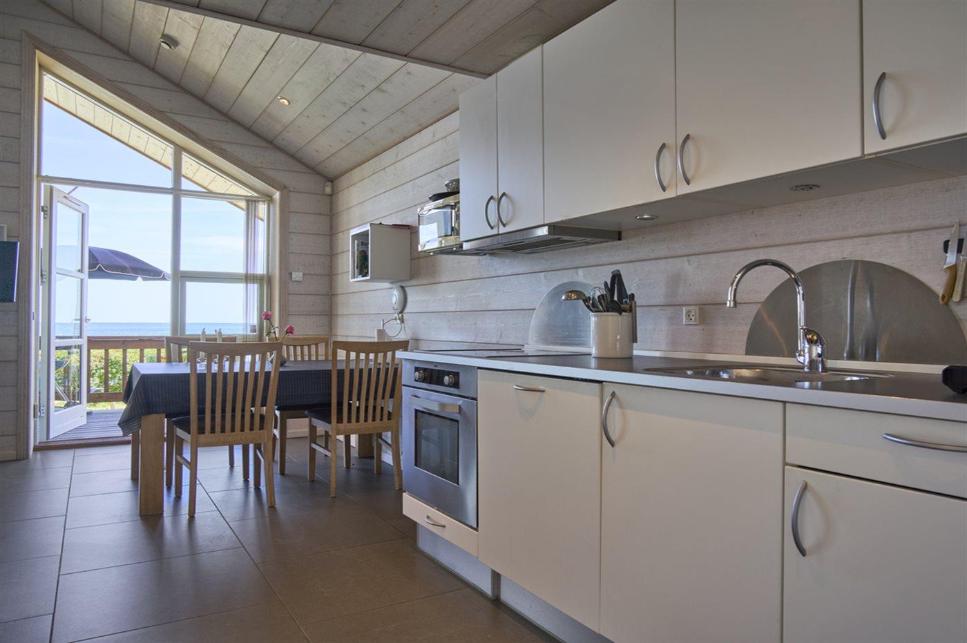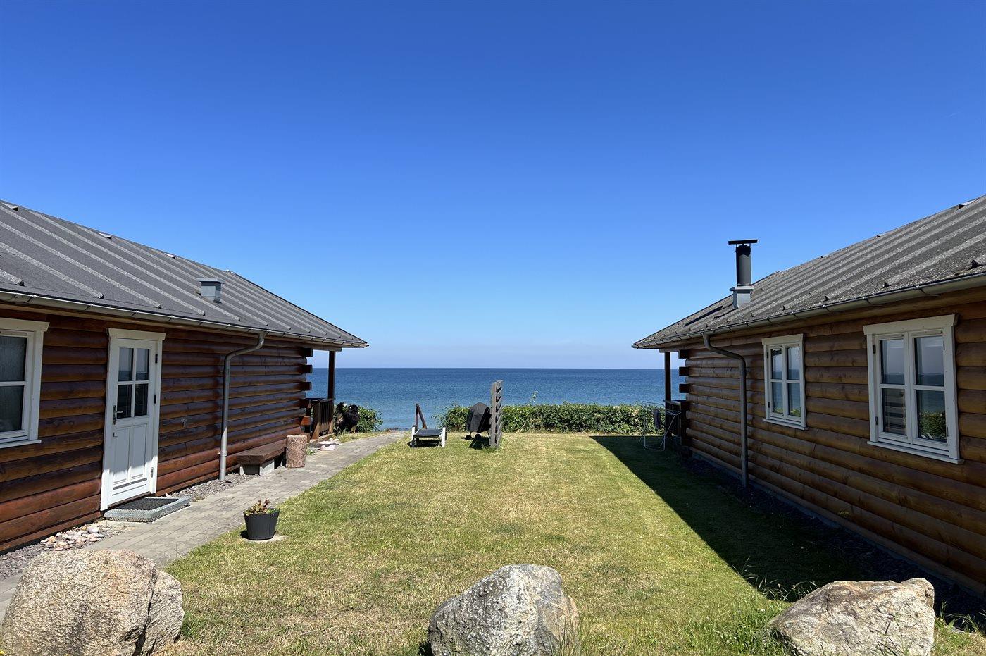 Dieses moderne Ferienhaus aus Holz liegt in erster Reihe zum Strand bei Sandkås - auf einem Strandgrundstück, nur ca. 10 Meter vom Meer entfernt. Sowohl vom Haus als auch vom Grundstück hast du Panoramablick über die Ostsee.