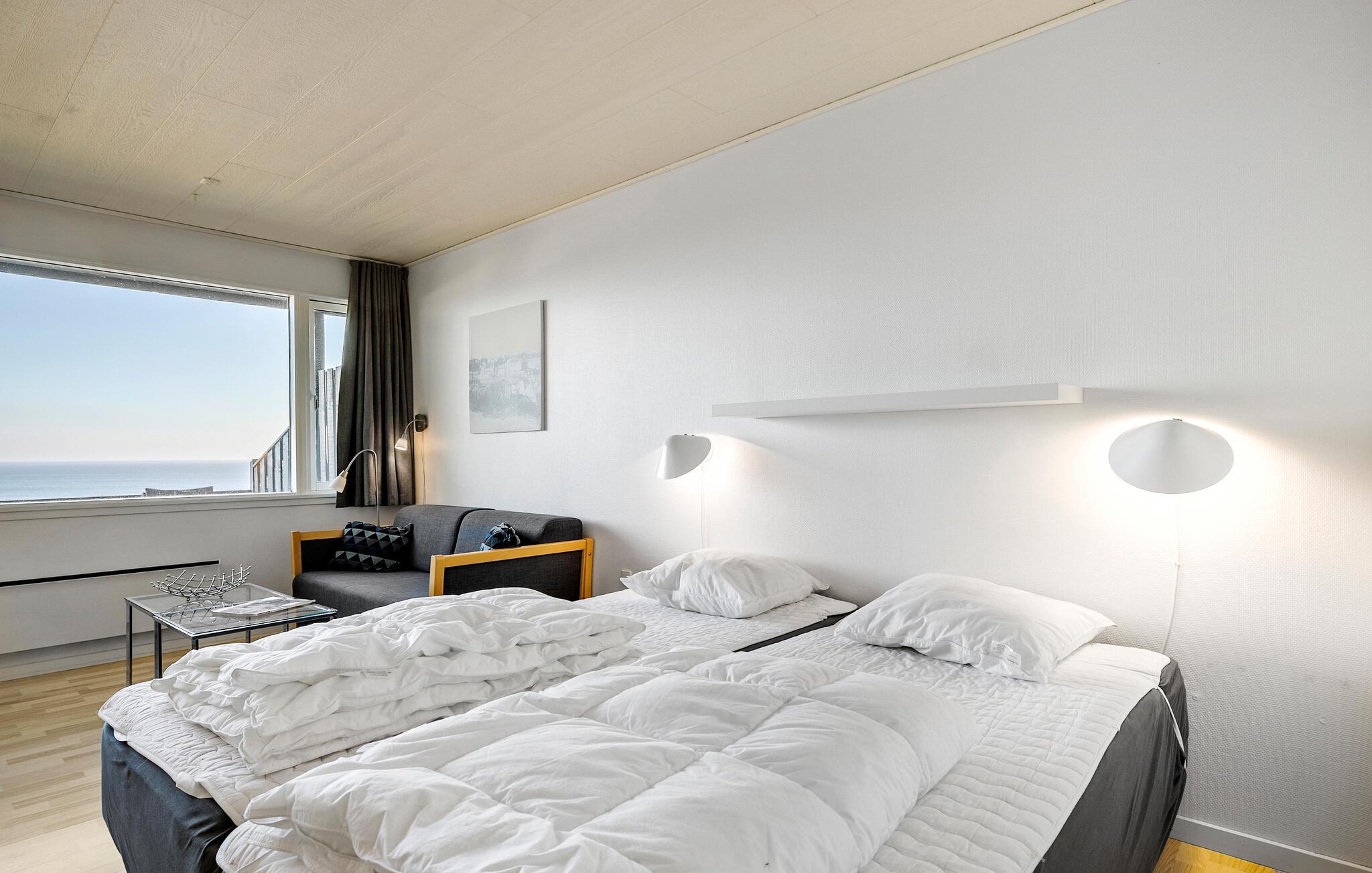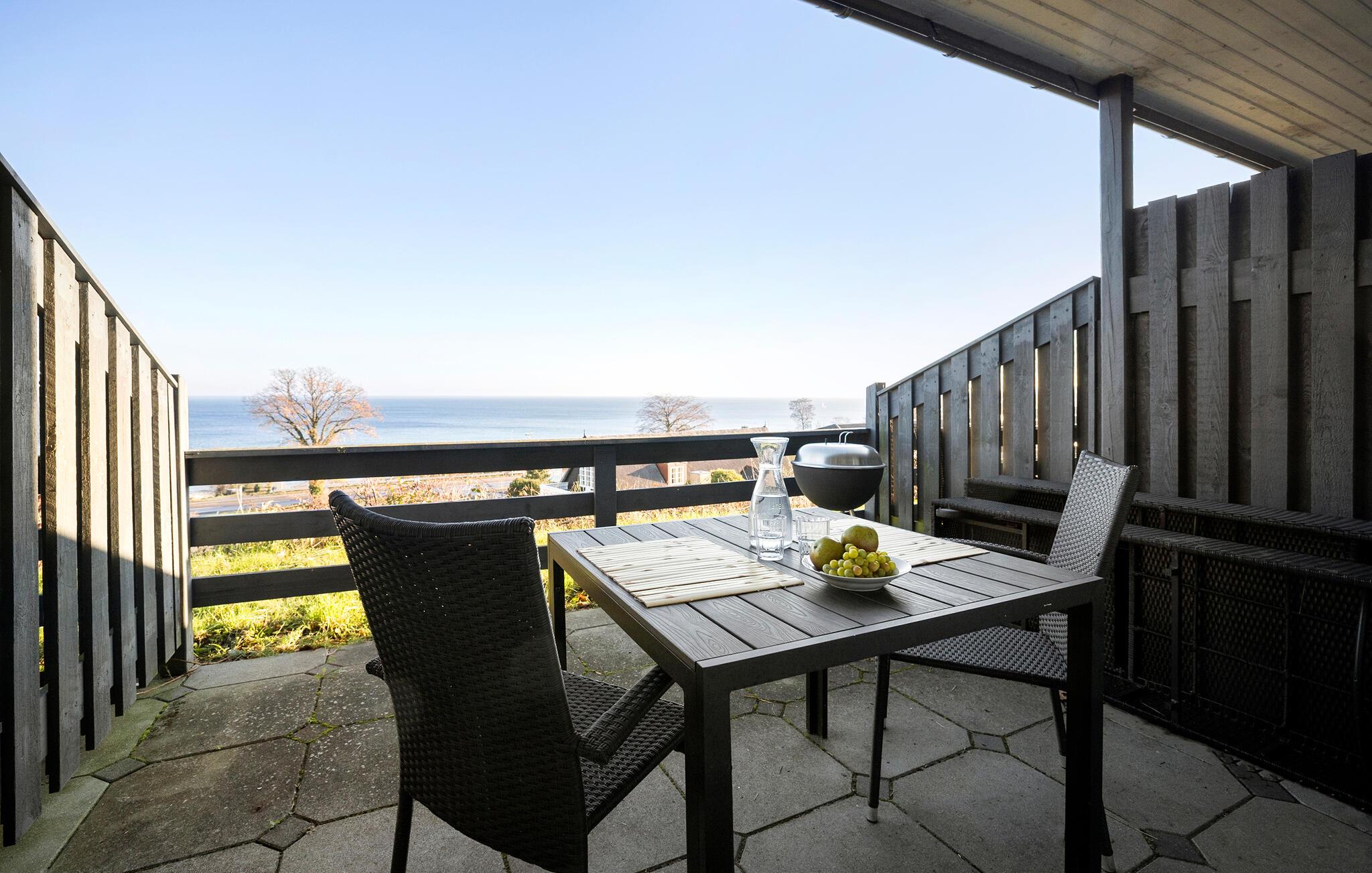 Charmantes Studioapartment mit Meerblick und privater Terrasse in Allinge, ideal für entspannte Urlaubstage an der Ostsee.