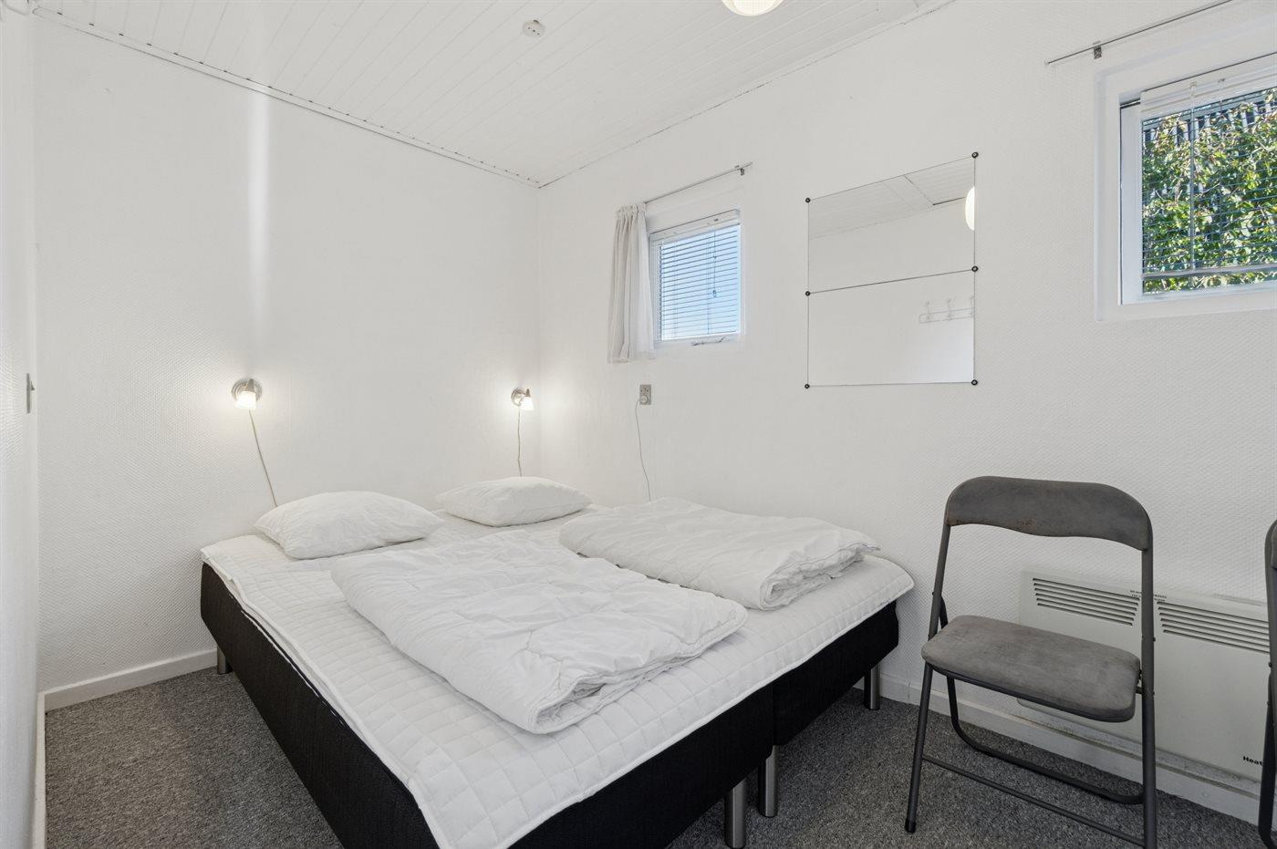 Es gibt einen Schlafraum. 2 Schlafplätze in einem Doppelbett. 2 Schlafplätze auf einer Doppelschlafcouch. 2 von diesen Schlafplätzen befinden sich im Wohnzimmer.