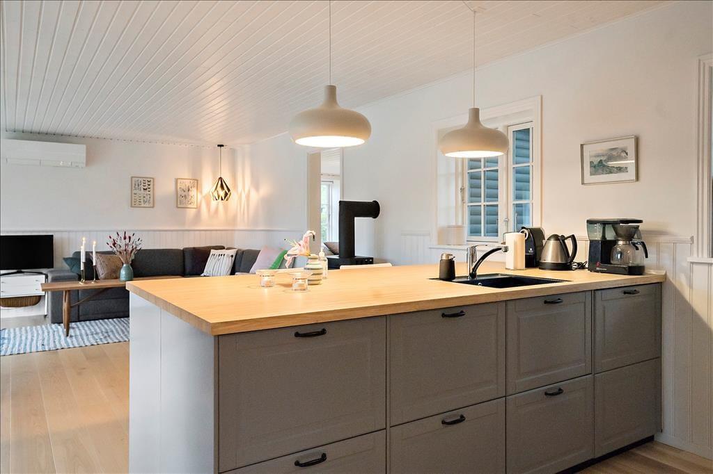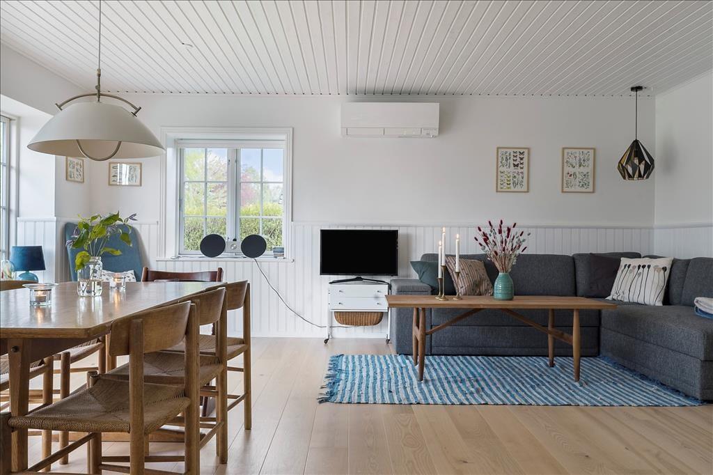 Das Ferienhaus liegt am Rande des etablierten Ferienhausgebiets in Hornbæk, nahe Saunte. Von hier aus kannst du einen landschaftlich reizvollen Spaziergang durch die Hornbæk Plantage unternehmen, um den Strand zu erreichen, wo Sand und Steine in schöner Harmonie aufeinandertreffen. Der Hornbæk Strand ist bekannt für seinen weißen Sand und sichere Badebedingungen, was ihn ideal für sowohl Kinder als auch Erwachsene macht.Die Stadt Hornbæk bietet eine Vielzahl von charmanten Restaurants, Cafés und Einkaufsmöglichkeiten, sodass du dich mit lokalen Delikatessen und Spezialitäten verwöhnen kannst. Für einen kulturellen Ausflug empfiehlt